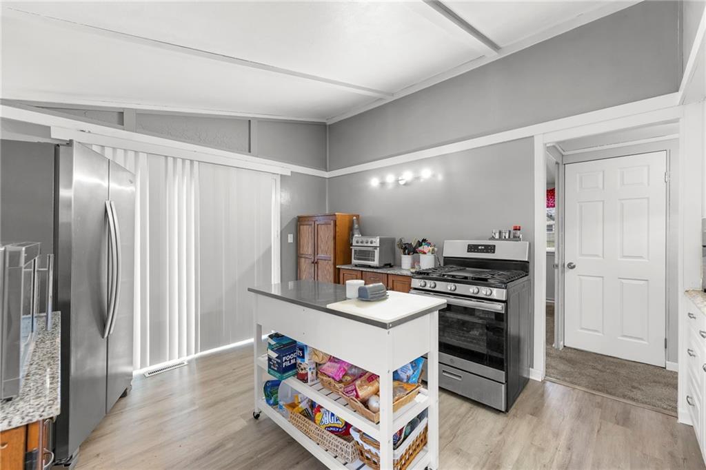Welcome home to this charming ranch-style property in Gladstone offering comfort, functionality, and room to grow. The main level features durable LVP flooring complemented by newer carpet throughout, creating a warm and inviting living space. The thoughtful layout makes everyday living easy and efficient. Step outside to enjoy a fully fenced backyard, perfect for pets, play, or entertaining, complete with a storage shed for added convenience. The full, unfinished basement provides endless potential—ideal for future living space, a home gym, workshop, or additional storage. Located in a quiet neighborhood with easy access to shopping, dining, and highways, this home is a fantastic opportunity for buyers looking to add their own finishing touches while enjoying move-in-ready updates. Don’t miss your chance to make this one your own!
