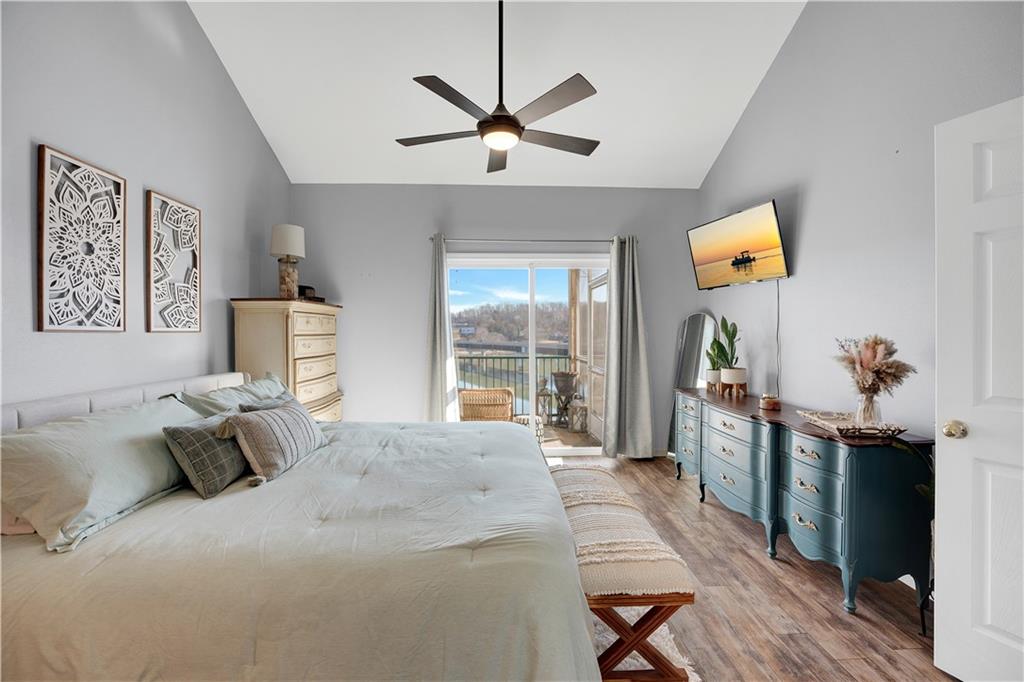 Experience lake living in this 4-bedroom, 2-bath penthouse condominium offering approximately 1,923 square feet in the Cedar Heights community. The open layout features vaulted ceilings, abundant natural light, and a stone fireplace. Enjoy two outdoor spaces, including a screened deck and an open sun deck for relaxing and taking in the surroundings. The kitchen offers stainless steel appliances, a spacious peninsula, and tile backsplash. The primary suite includes vaulted ceilings, a walk-in shower, and walk-in closet. A second bedroom connects to a Jack-and-Jill bath, with an additional main-level bedroom. The upper-level loft provides a flexible living area plus a fourth bedroom with walk-in closet and plumbing for a potential third bath. A 12x30 boat slip is included. Community amenities include three swimming pools and maintained common areas. Convenient access to golf, dining, shopping, entertainment, and Ballparks National. Seller will pay all levied special assessments prior to closing. Nightly rentals permitted per community guidelines. This property is offered furnished for a turn key experience. Some antiques and personal items are not included. Don't miss this opportunity for a great lake condo!
