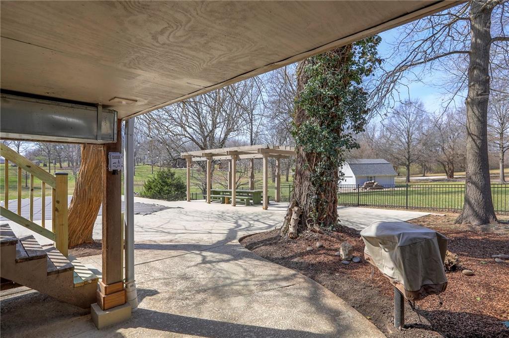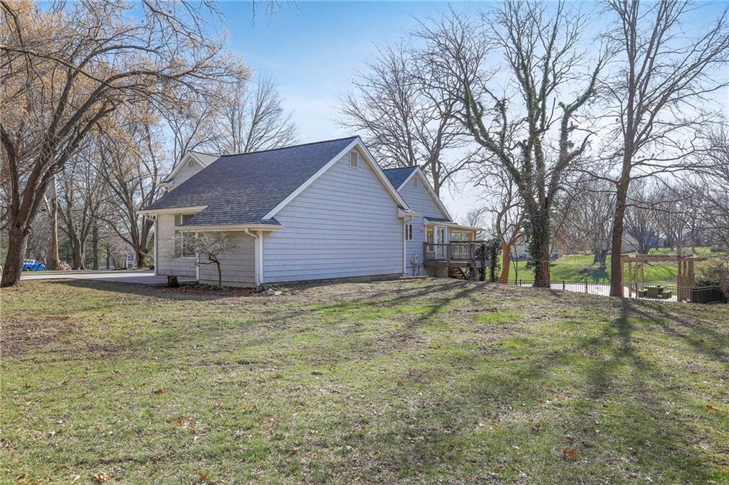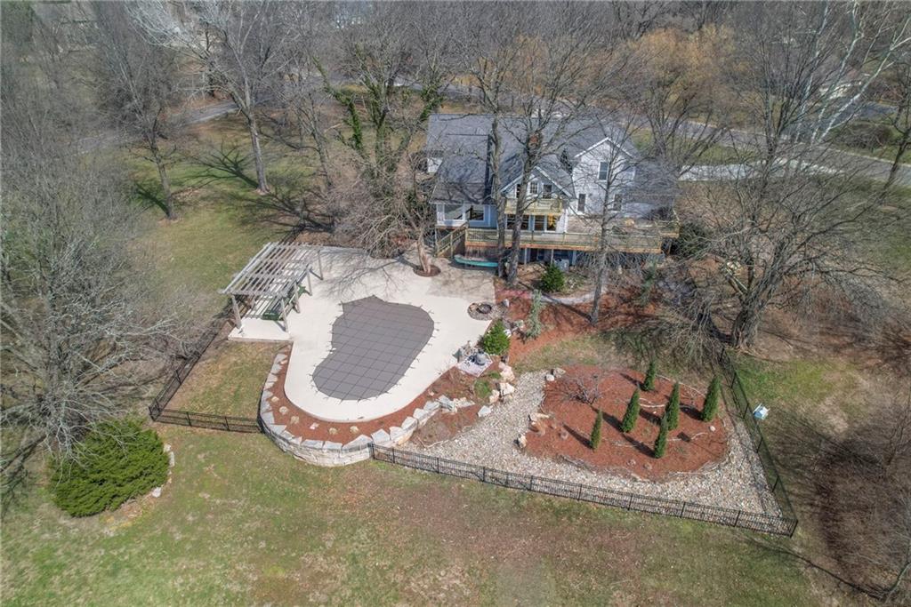 Set on nearly 3 acres of park-like grounds within a quiet, established neighborhood in the Lee’s Summit School District, this 1.5-story home is the perfect place to raise a family and host unforgettable gatherings. The interior is designed for entertaining, anchored by a huge custom kitchen featuring a large island, a propane stove, double ovens, and commercial-grade appliances including a dedicated ice machine and wine refrigerator. The space flows into an informal dining area and a versatile room that serves as a massive walk-in pantry or formal dining space. With two distinct living areas—a main-level great room and a large basement family room, both featuring cozy wood-burning fireplaces—there is plenty of space for family movie nights or hosting friends. Just off the kitchen, a massive main-level laundry room and a dedicated drop zone keep the household organized. The layout is built for family life, featuring a main-level primary suite with a private ensuite and a huge walk-in closet, along with a small office for remote work. The upper level houses three additional bedrooms, including one with generous attic storage. The lifestyle extends outdoors to a private backyard oasis. A saltwater inground pool serves as the centerpiece, surrounded by extensive decking with ample room for seating and a nearby fire pit. The yard is enhanced by custom landscaping featuring a variety of perennials and plants designed to bloom year after year. The walk-out basement includes a full bathroom and plenty of unfinished storage space, while the detached garage provides extra room for a workshop or storage—all just minutes from town.