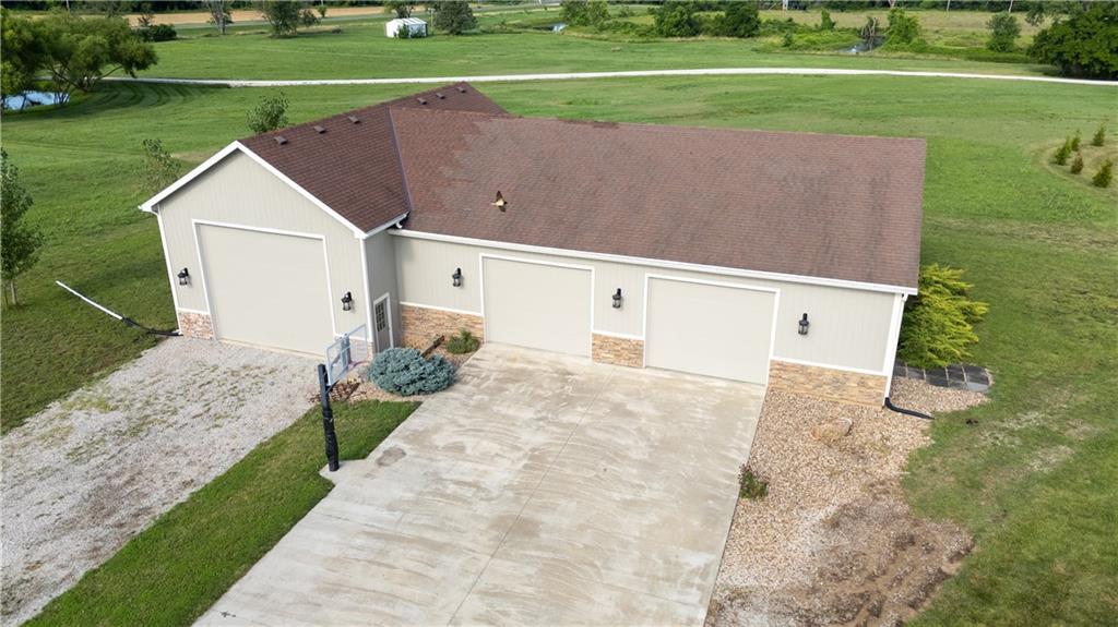 Stunning one-of-a-kind waterfront estate on approximately 10 private acres just minutes from Lawrence, Baldwin and Kansas City! Backing to the Wakarusa Watershed lake, this home offers exceptional views, privacy, and abundant wildlife on blacktop roads. The main level features an open floor plan with a deluxe kitchen, oversized island, office, and luxurious primary suite. Upstairs are four spacious bedrooms, each with bathroom access and walk-in closets. Bonus storage space in the easily accessible attic. The finished lower level is designed for entertaining with a family room, wet bar, and seamless access to the outdoor living area, custom gunite pool and spa. Offering over 5,500 sq ft of living space with 7 bedrooms and 5 bathrooms, the property also includes a four-car attached garage and an impressive 3300+ square foot heated shop with concrete floors, oversized doors, 220V electric, and RV storage. A rare opportunity for luxury lakefront living with space to work, play and unwind!