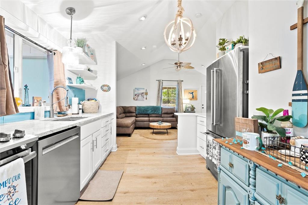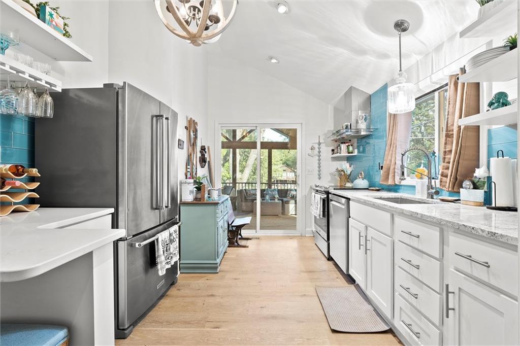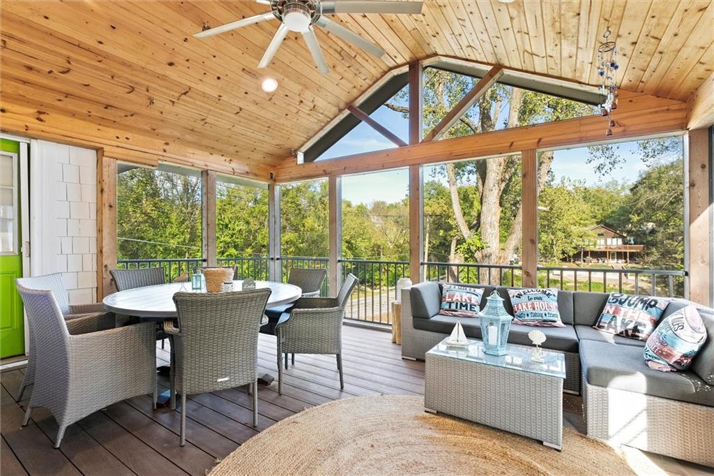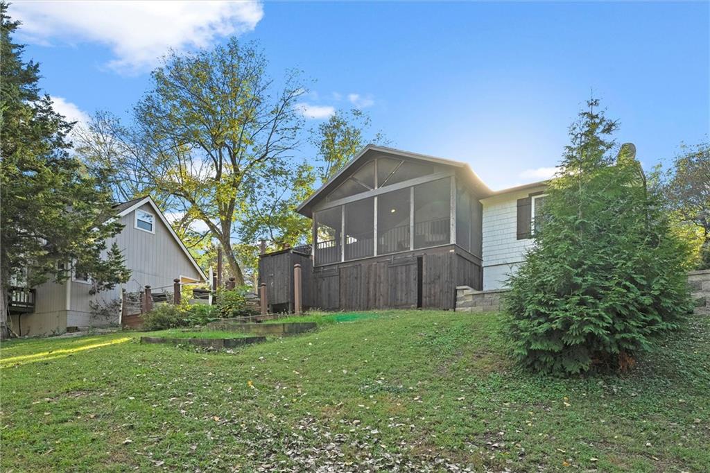 Experience lakeside living at its finest in this charming Lake Lotawana cottage. Perfectly positioned on a spacious .24-acre corner lot with its very own private dock with a boat lift, this home combines modern luxury with the serenity of nature. Step inside to vaulted ceilings and a thoughtfully updated interior featuring quartz countertops, stainless steel appliances, stylish backsplash, and contemporary fixtures. Fully renovated bathroom & two comfortable bedrooms make the perfect place to unwind. A large screened porch opens seamlessly to an expansive deck—ideal for entertaining—while the backyard fire pit provides a cozy setting for evenings under the stars. Surrounded by mature trees and tranquil views, this property embodies peaceful lakeside living. Whether as a weekend getaway or a year-round residence, this cottage captures the true Lake Lotawana lifestyle, from quiet mornings spent fishing, to afternoons on the boat, to evenings entertaining family and friends.