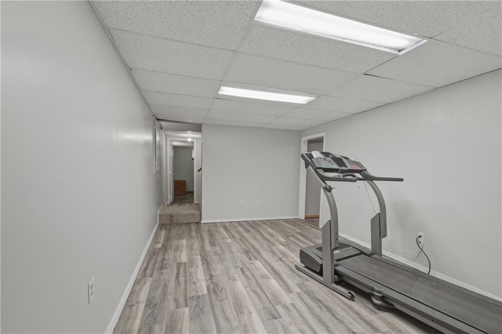 Welcome home to this inviting ranch nestled on a beautifully treed lot that combines modern convenience with cozy charm. This well-maintained home features an open-concept layout perfect for entertaining and everyday living. The spacious kitchen is the heart of the home, showcasing a large island with bar-style seating, a farmhouse sink, double oven, stove top, microwave, and amazing pantry (d0n't miss it) , and contemporary finishes throughout — ideal for both the casual cook and the home chef alike. The primary suite is your private retreat, complete with a luxurious bath featuring heated floors, a walk-in shower, relaxing soaker tub, and main-level laundry access for ultimate convenience. The finished basement expands your living space with a generous rec room and two additional rooms that can serve as non-conforming bedrooms, a home office, craft room, or gym—the possibilities are endless. Outside, enjoy nature and homegrown abundance with two cherry plum trees, one peach tree, and several grapevines, all bearing fruit. The one-car garage adds function, while the peaceful, shaded lot offers plenty of space for relaxation or play. Located in a desirable neighborhood with a new roof (2025), new windows, new flooring, new front door, new slider door, new deck, new appliances, and fresh paint on the exterior. Excellent schools and easy highway access, this home is perfect for those looking to downsize, start their homeownership journey, or simply enjoy easy, comfortable living in a great area.