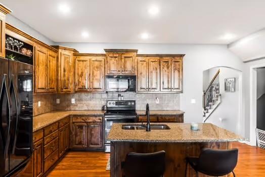 Beautifully maintained 5-bedroom, 3.5-bathroom townhome offering exceptional space and comfort. Enjoy hardwood floors throughout the dining room, living room, and kitchen, with cozy carpeting in the bedrooms and tile in all bathrooms. The gourmet kitchen includes custom knotty alder cabinets, granite countertops, and a large island—perfect for cooking and entertaining. The primary suite features a luxurious bathroom with double vanities. Additional highlights include ceiling fans, energy-efficient low-E windows, a glass sliding door leading to a covered patio, and a fully fenced yard ideal for outdoor activities or pets. Located in the highly rated De Soto School District, this rare 5-bedroom townhome is within walking distance of the grade school, junior high, and high school. The community offers outstanding amenities including a water park, dog park, walking trails, and multiple parks for recreation and leisure. Plus, the HOA takes care of snow removal and lawn mowing, giving you a low-maintenance lifestyle in a beautiful, family-friendly neighborhood.