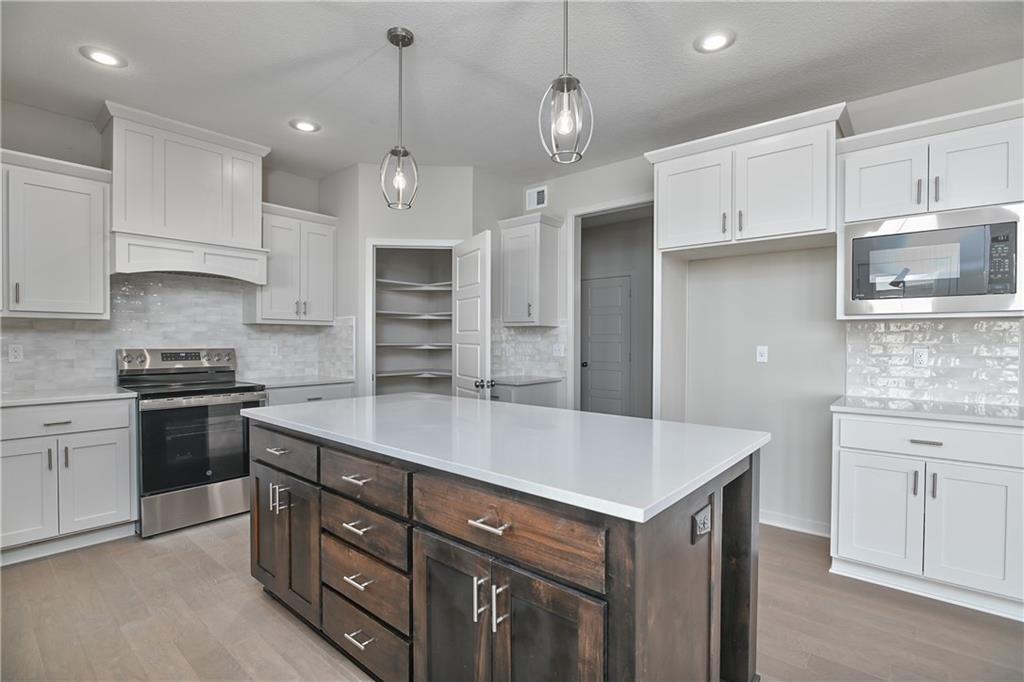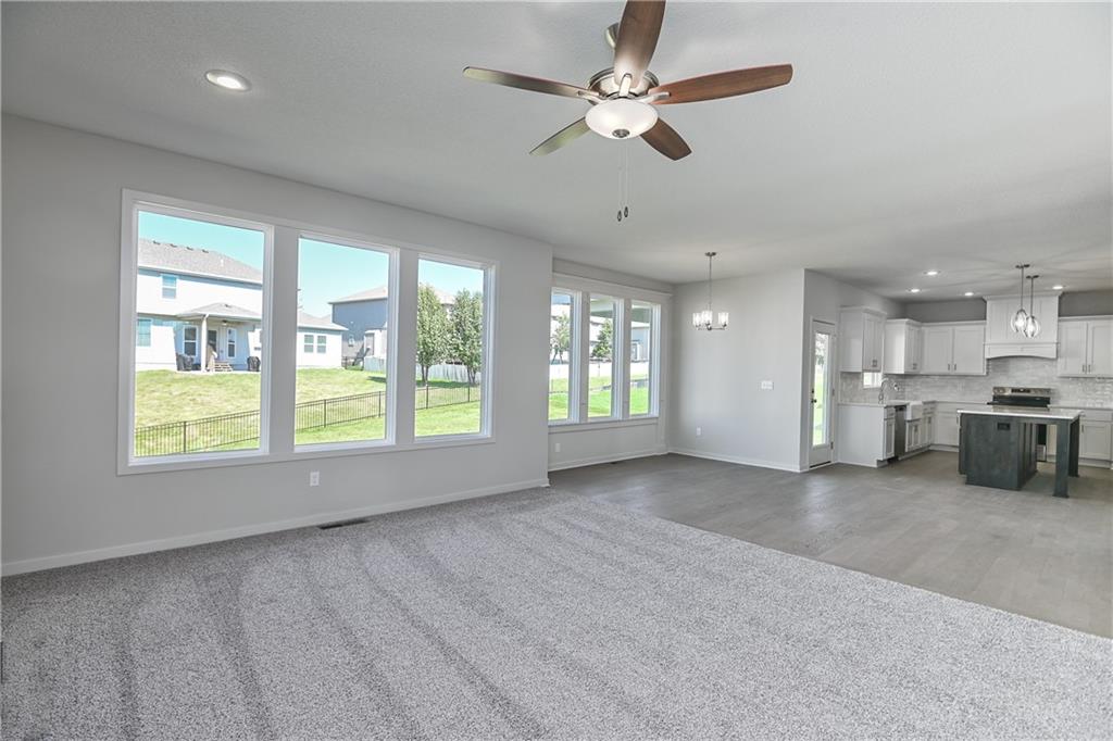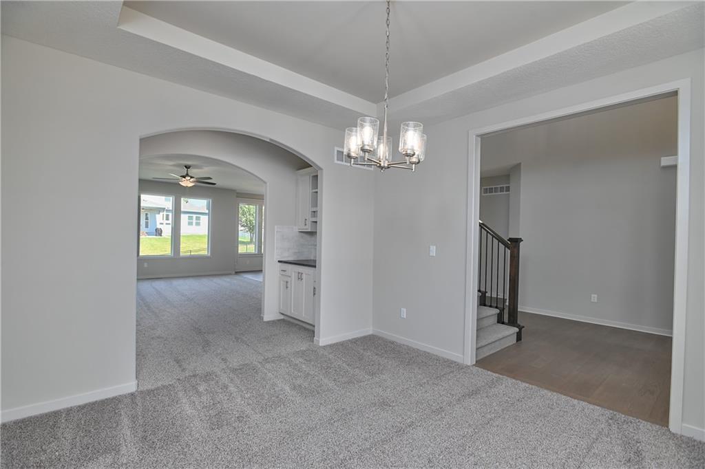 Popular Harlow 5 | 5 Bedrooms | 4 Baths | 3-Car Garage | Prairie Farms This stunning 2-story Harlow 5 home offers 5 bedrooms, 4 baths, and a spacious 3-car garage in the highly sought-after Prairie Farms community. From the moment you enter, you’ll be impressed by the beautiful turned staircase and gleaming hardwood floors. The formal dining room features built-in cabinetry on both sides and flows seamlessly into a bright, open great room with a cozy fireplace and abundant natural light. The adjacent dining area and chef’s kitchen are an entertainer’s dream—highlighted by hardwood floors, granite countertops, a large center island, apron-front sink, painted custom cabinets with soft-close doors and drawers, upgraded hardware, stainless steel appliances, built-in microwave, and a generous walk-in pantry. A main-level bedroom with a closet offers flexibility as a guest suite, office, playroom, craft space, or more. Upstairs, the luxurious owner’s suite boasts a spa-like bathroom with double granite vanities, tile floors, a free-standing soaking tub, and a walk-in tiled shower. A spacious walk-in closet connects directly to the conveniently located laundry room. Two secondary bedrooms share a Jack & Jill bath, each with its own private vanity. A fourth upstairs bedroom features its own private bath and walk-in closet. Additional highlights include a huge unfinished basement with abundant storage potential, an in-ground sprinkler system, and more. Community amenities include a large swimming pool, cabana, playground, and walking trails. Plus, Prairie Farms is adjacent to the newly renovated Lake Olathe, offering paddleboarding, fishing, hiking, and more—making this a perfect place to call home!
