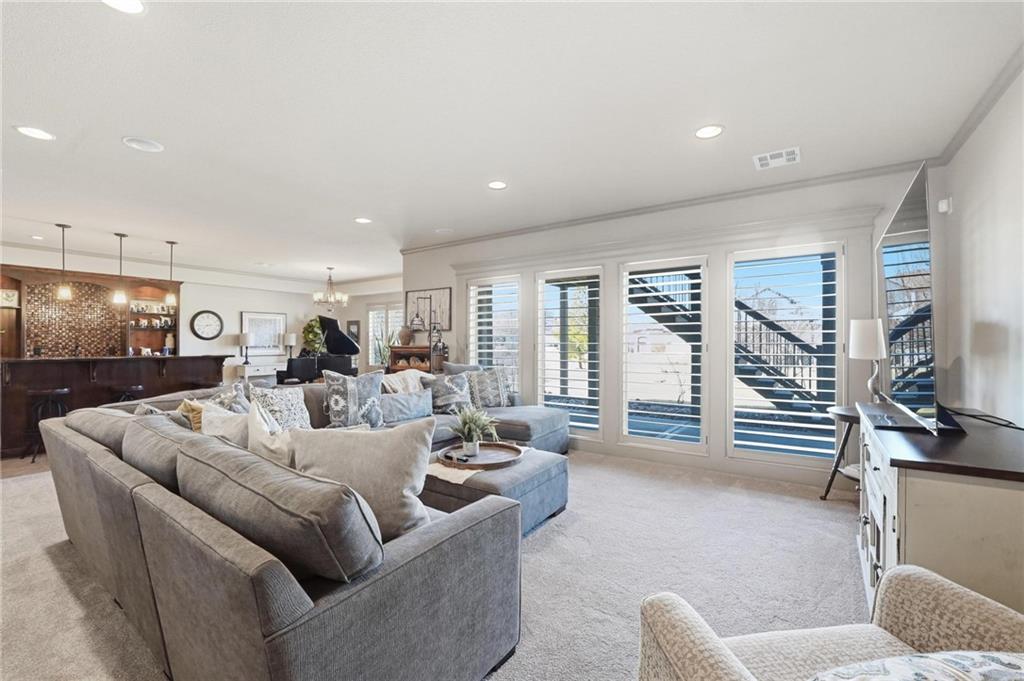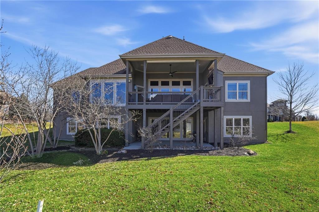 MAGNIFICENT REVERSE 1.5 ON A CUL-DE-SAC IN COLTON LAKES SOUTH IN THE AWARD-WINNING BLUE VALLEY SCHOOL DISTRICT! This stunning home perfectly blends warm, inviting contrasts with clean, modern design, all showcased in a desirable open floor plan ideal for everyday living and entertaining. Light-filled Great Room is anchored by a dramatic floor-to-ceiling stacked stone fireplace with custom built-ins—creating a striking focal point and the perfect place to gather. Chef’s kitchen is sure to impress with quartz countertops, a generous center eat-in island, walk-in pantry and stainless steel appliances, including a gas cooktop, built-in oven and microwave. An adjacent breakfast nook and formal dining room offer versatile spaces for hosting guests or enjoying cozy nights at home. Retreat to the luxurious primary suite featuring direct access to the covered deck—for your morning coffee or evening unwind. Spa-inspired en-suite boasts a double vanity, whirlpool tub, separate walk-in shower and a spacious walk-in closet with convenient in-suite laundry. Second bedroom, full bath and mudroom complete the thoughtfully designed main level. Finished walk-out lower level expands your living space with a large family room, wet bar, three additional bedrooms, two full baths and a second laundry area—ideal for guests or multi-generational living. Professionally designed landscaping creates a serene, private outdoor retreat. Enjoy time on the deck or patio, both overlooking the extra-wide, spacious lot and tree-filled greenspace. Unbeatable location just minutes from Heritage Park, the Overland Park Arboretum, Blue Hawk's shopping and dining and easy highway access. WELCOME HOME!
