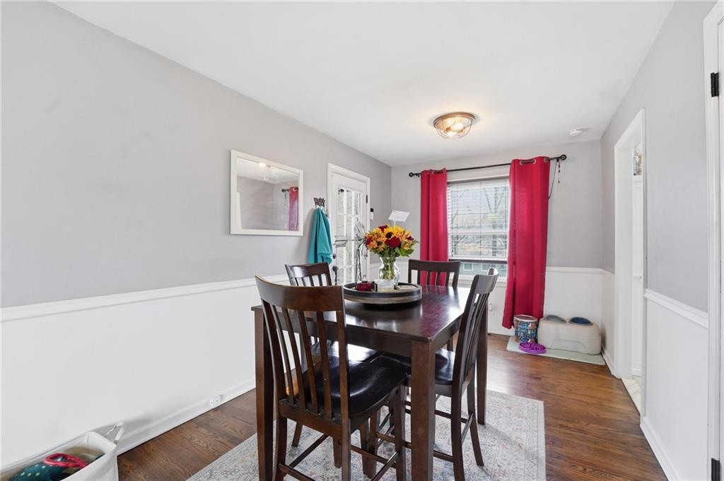 Warm and welcoming 3-bedroom ranch with 2 full baths, spacious 2-car garage. A convenient door from garage opens to a large, level, fenced backyard, featuring a partially covered patio area, bricked around the edges and perfect for quiet mornings as the sun rises, evening gatherings without the heat of the sun, or simply relaxing outdoors. A separate back door leads into the home. Inside, the original 1956 hardwood floors add timeless character and mid-century charm throughout. You'll find a comfortable, spacious living room, a dedicated dining area and an updated kitchen with brand new appliances and painted cabinets The washer and dryer stay, adding to your convenience. The three bedrooms, one a primary with full bath, complete the main level in this charming home. The lower level offers over 500 additional finished square feet of living space, including a welcoming family room and a non-conforming fourth bedroom, perfect for guests, a home office or a hobby space. All upstairs windows have been replaced recently, adding natural light and efficiency. Owner also added new railing to the front entrance.