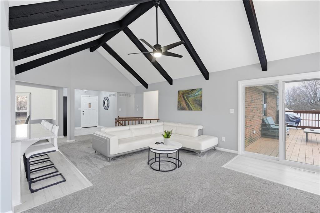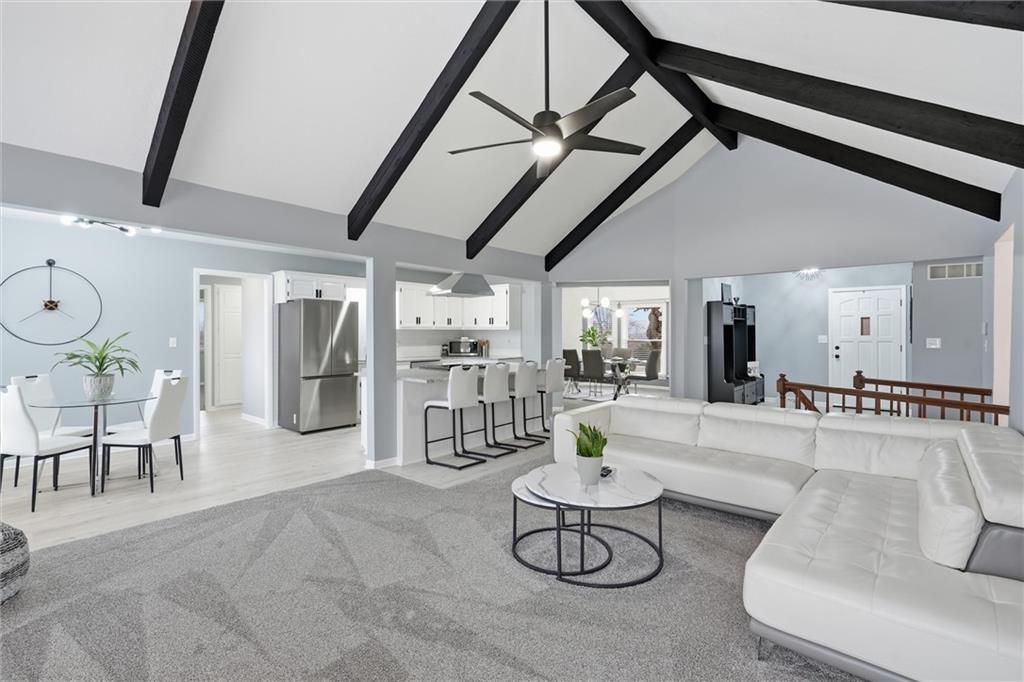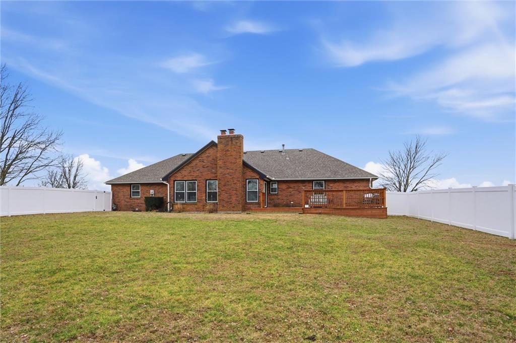 Discover your dream home on a 2-acre corner lot with gorgeous views and abundant wildlife. This meticulously remodeled 4-bedroom, 3-bath ranch home features a spacious 3-car garage and a host of modern upgrades. Enjoy effortless main-level living with an open-concept layout, formal dining, family room, home office, and a chef’s kitchen with granite counters, new appliances, and a large island. The primary suite includes double vanities and three closets. Cozy up by one of two brick fireplaces. The walkout basement offers a second family room with a fireplace, a non-conforming room, a full bath, a workshop area, and abundant storage. Recent updates include a 16x24 deck, fresh paint inside and out, updated furnace, A/C, water heater, humidifier, roof, guttering, and thermal windows. Enjoy the new (approximately $17,000) top-of-the-line fenced yard (lifetime warranty), perfect for pets, kids, or a future pool. All appliances stay, plus new attic insulation and a just-serviced septic system. Ideally located 3 miles from the Historic Shopping District and Elms Hotel, near golf, wineries, a community center, and in an AAA school district. KCI airport is just 45 minutes away. Don’t miss this move-in-ready opportunity; this one has it all!