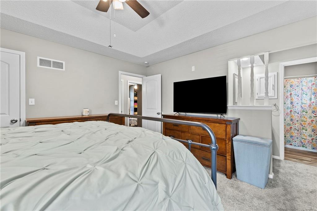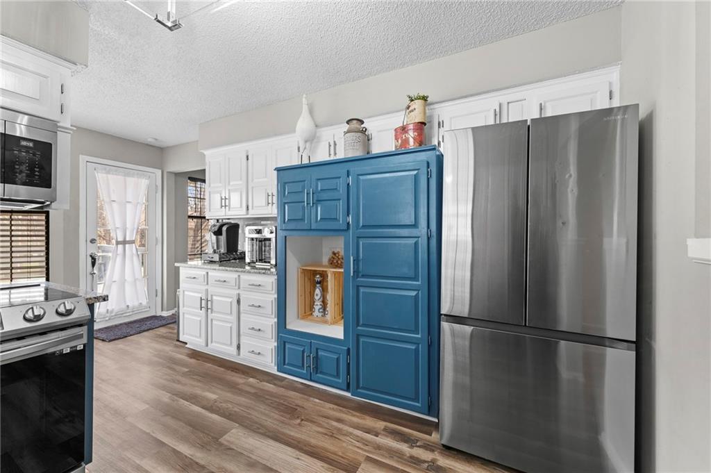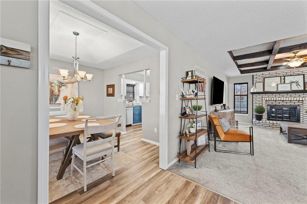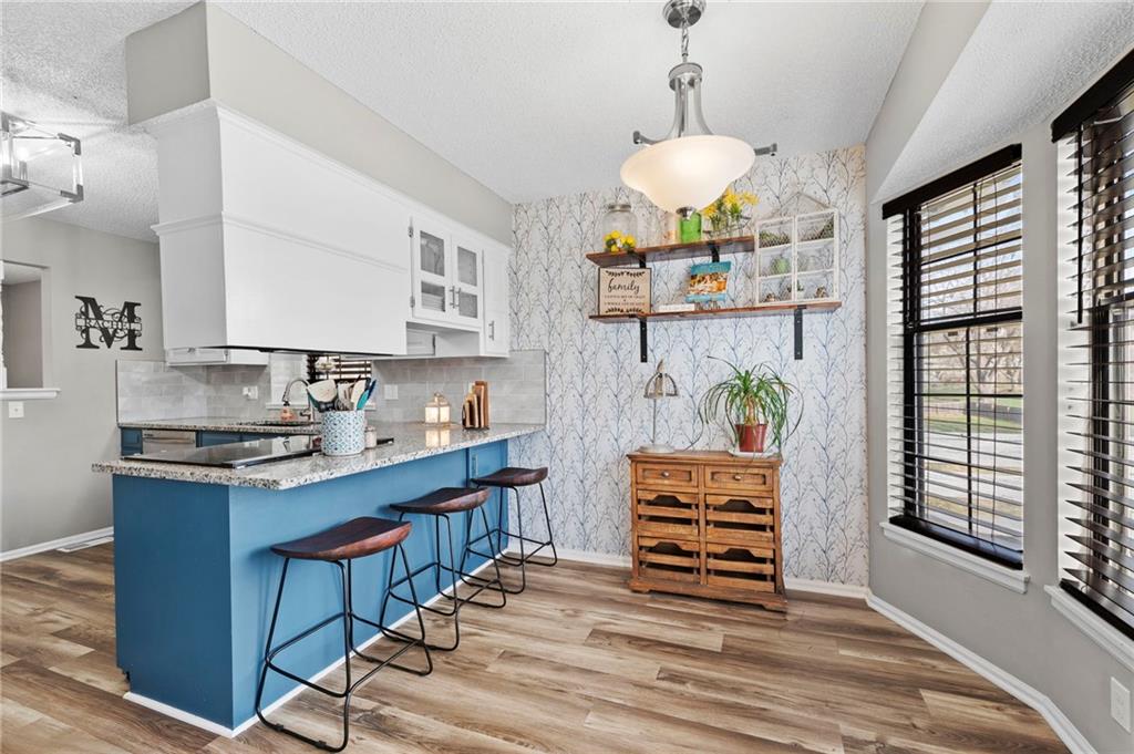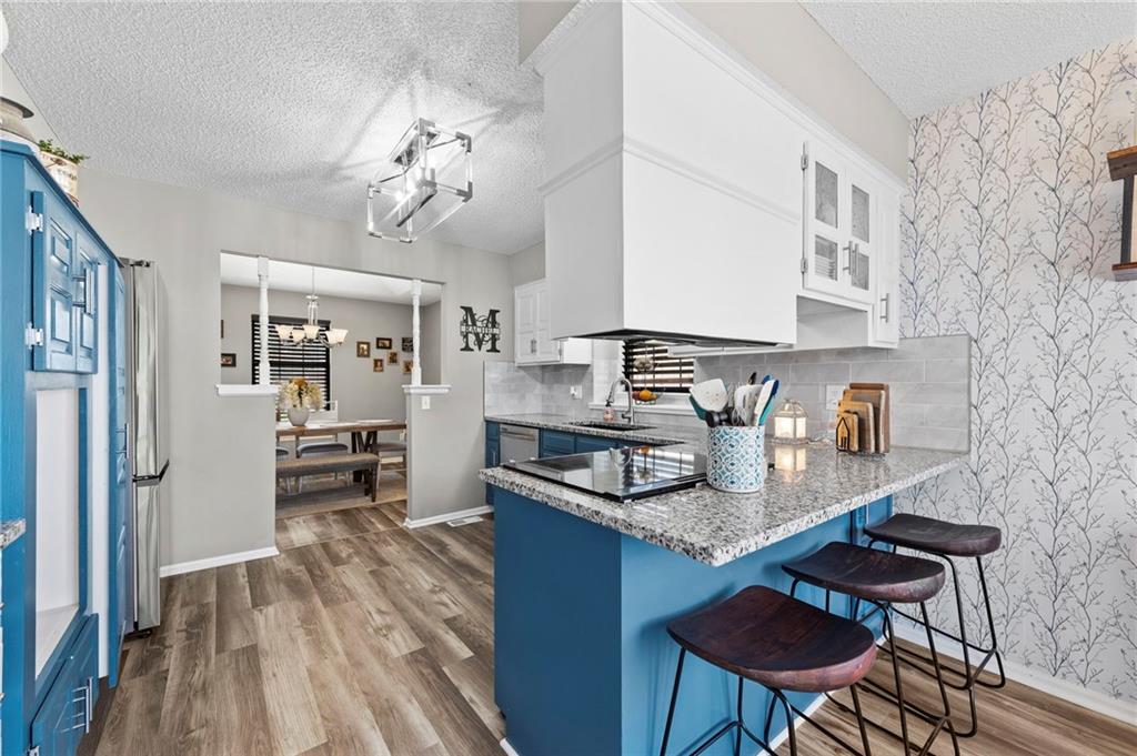 One of the cutest homes in Vista Del Verde with so many great features! This home is updated in coveted black and white new exterior paint with curb appeal that pops! Come inside to a welcoming front nook to read a book or set up as the dogs favorite sun bathing spot. Enjoy the open dining/living room with a fireplace that sets the room drawing your eye to a contrasting ceiling. The kitchen is ready to host all of your cooking with granite countertops and stainless steel applicances that overlooks a breakfast nook with a bay window displaying a newly painted entertainment deck with storage below. There are also several interior storage areas including a converted bedroom closet, that can be converted back to a bedroom. Newer plush carpet throughout, luxury vinyl plank floors, large hall bath, downstairs rec room with wet-bar and walk-out, third full downstairs bathroom with separate laundry area, large deep two car garage, and covered back patio area are just a taste of what this home has to offer. Lastly the amazing location with great shopping, Lee's Summit schools, parks and highway access nearby. Schedule your showing today before it is gone!