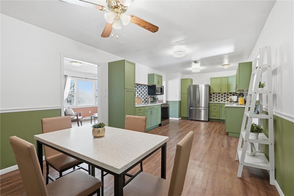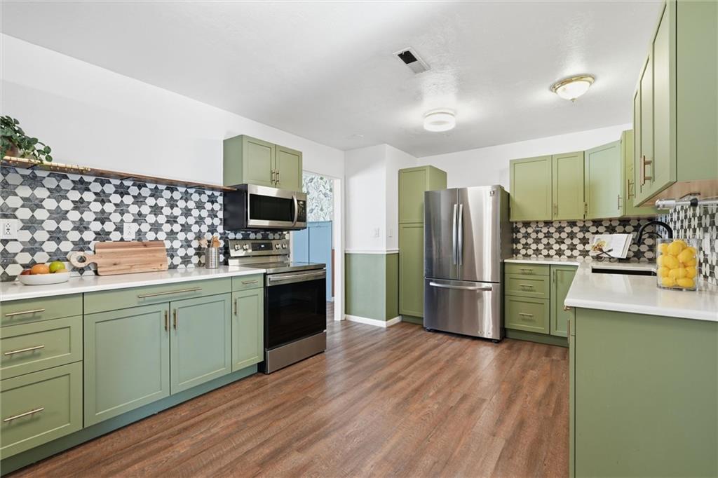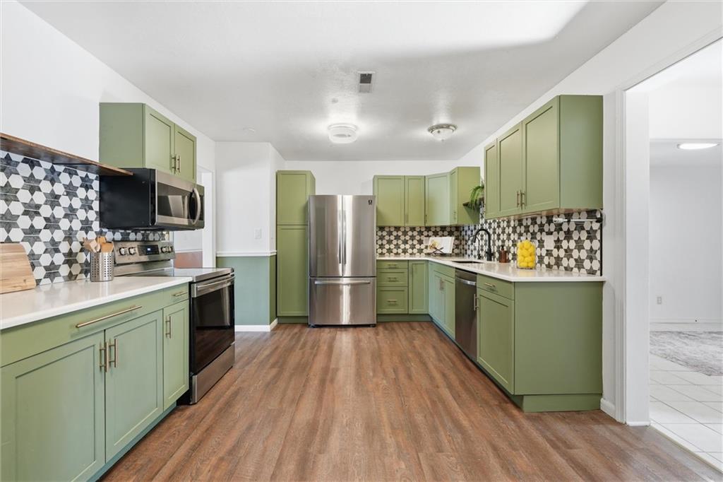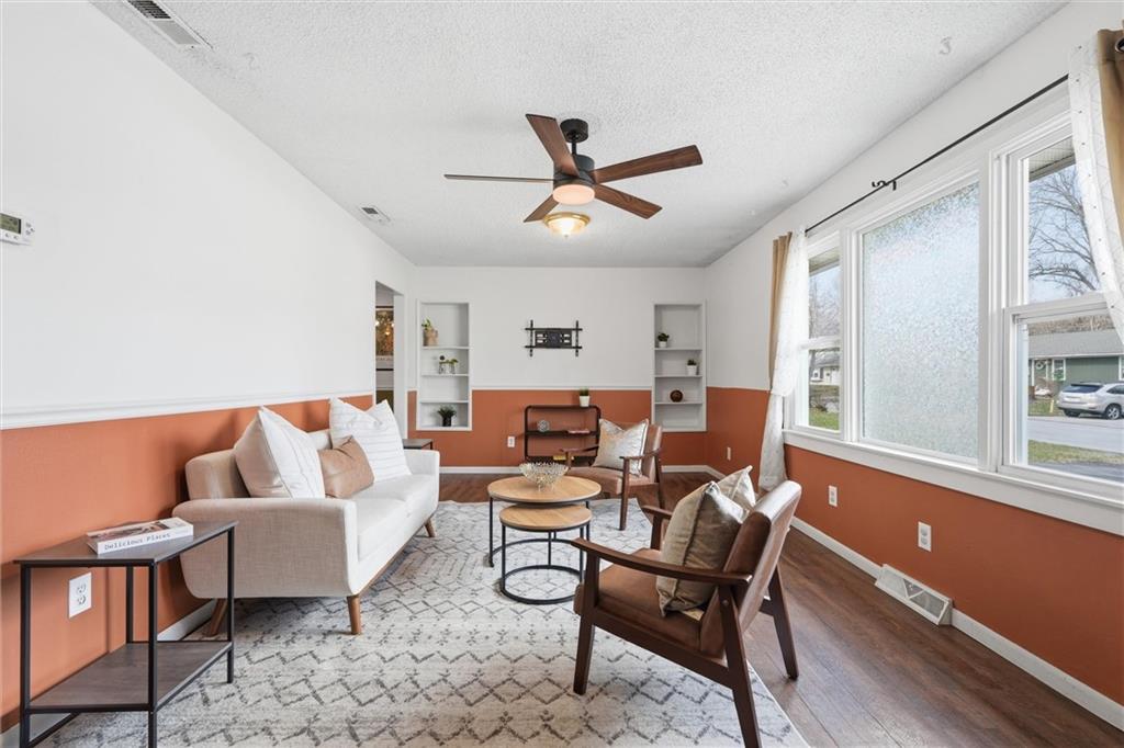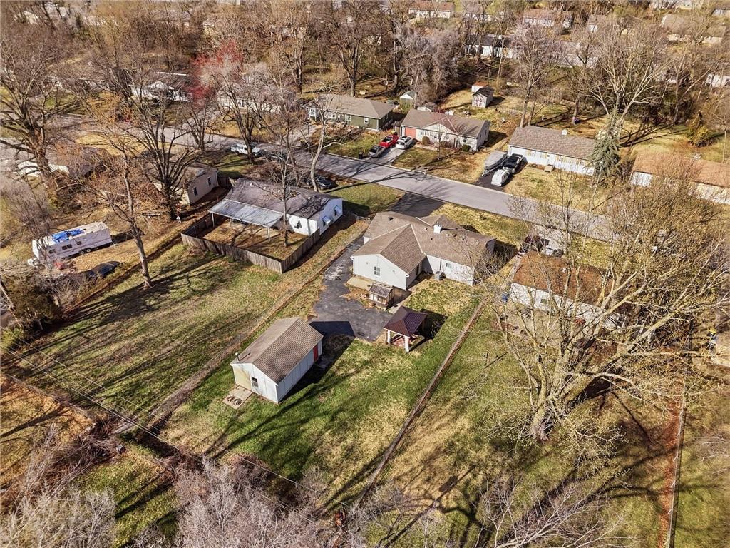 Fully updated ranch offering true main level living just minutes from Longview Lake. This four bedroom, one bathroom home features spacious bedrooms and an oversized bathroom with a comfortable and functional layout. The updated kitchen includes a walk in pantry and flows conveniently to the main level laundry room located just off the kitchen. Updates throughout the home include fresh paint, updated finishes, and thoughtful design from floor to ceiling creating a bright and inviting living space. Outside you will find a double driveway with a double gate leading to the backyard and an oversized detached garage featuring a heated shop complete with shelving, work benches, and ample workspace. The large fenced backyard offers additional outdoor living space with a gazebo and greenhouse already in place. A rare opportunity to own a move in ready ranch home with a workshop, outdoor amenities, and convenient access to Longview Lake, parks, and nearby conveniences.