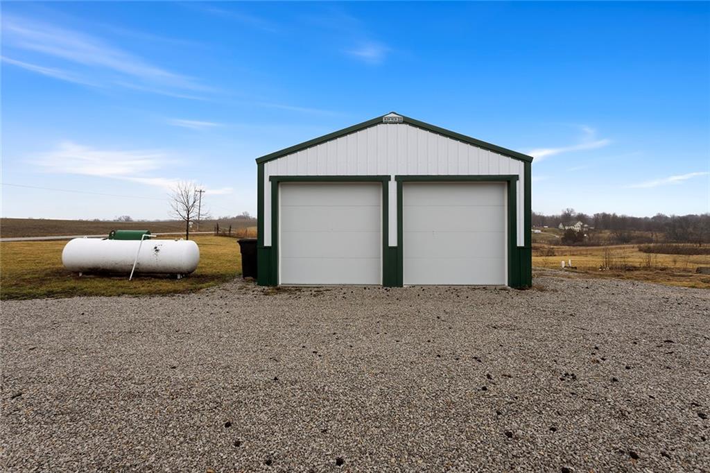 Nestled on 3.35 sprawling acres within the Excelsior Springs School District, this charming retreat offers a perfect blend of functional living and peaceful privacy. The inviting interior features a seamless flow from the living area into the dining space and kitchen, which boasts a generous walk-in pantry and access to a bright sunroom with a versatile loft. Complete with a spacious primary bedroom featuring a walk-in closet, a convenient mudroom/laundry area, and ample storage between the detached two-car garage and additional shed, this property is an ideal sanctuary for those seeking a manageable home with plenty of outdoor room to roam.