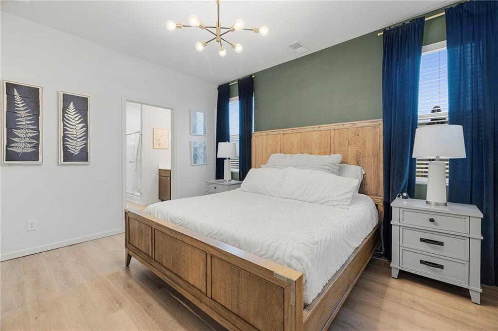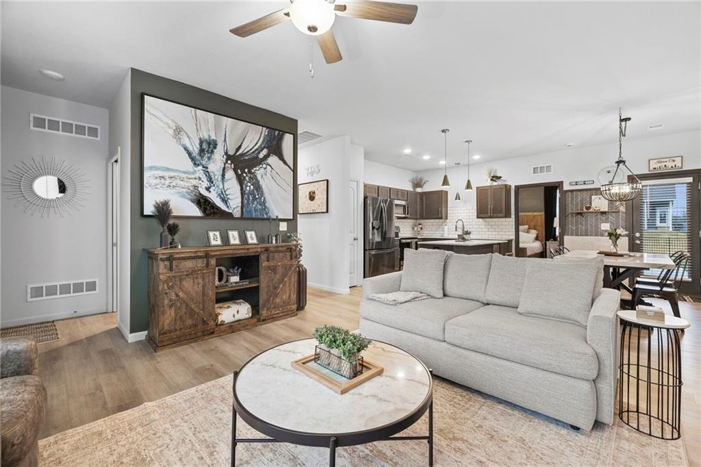 Bright, modern, and beautifully finished, this 3-bed, 2-bath ranch delivers the fresh feel of new construction—only better. Designer upgrades elevate every space, from the custom accent wall and curated lighting to the kitchen’s quartz countertops, pull-out spice rack, sleek new faucet, and updated hardware. The primary bedroom feels luxe with upgraded flooring and a refined light fixture. The laundry room adds charm with custom wallpaper, while smart-home features, a ceiling-mounted garage storage rack, and striking black doors bring both function and style throughout. Outside, enjoy an extended patio, new fence, and refreshed landscaping that expand your living space and create an inviting welcome. Beautifully finished, thoughtfully upgraded, and styled with intention—this home delivers a truly move-in-ready experience.