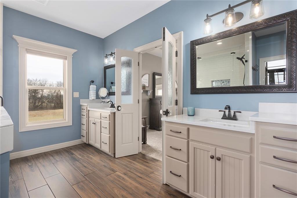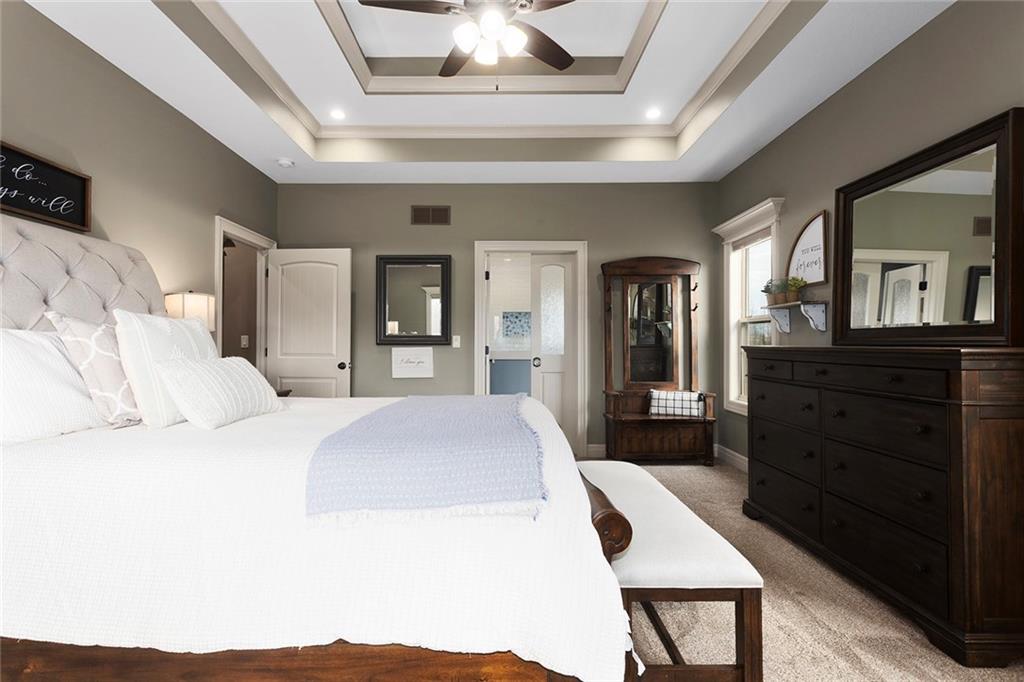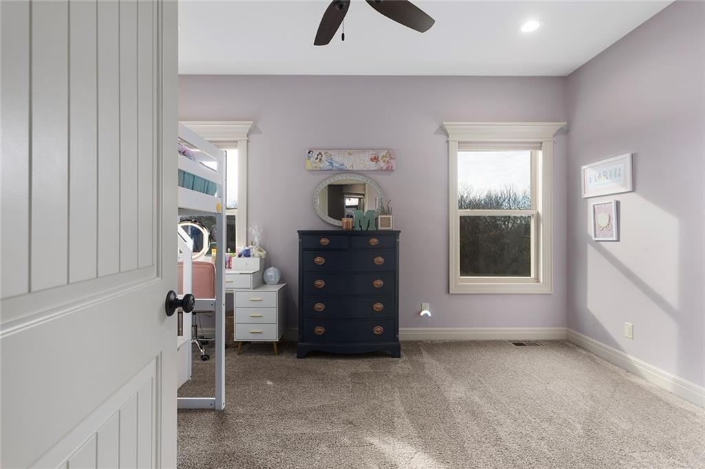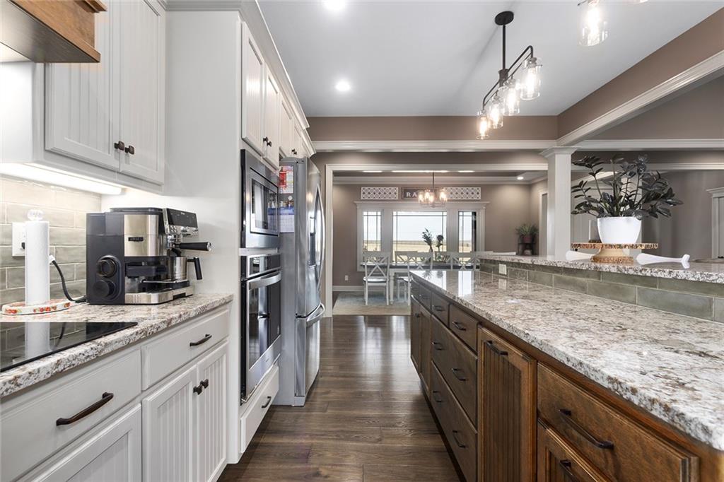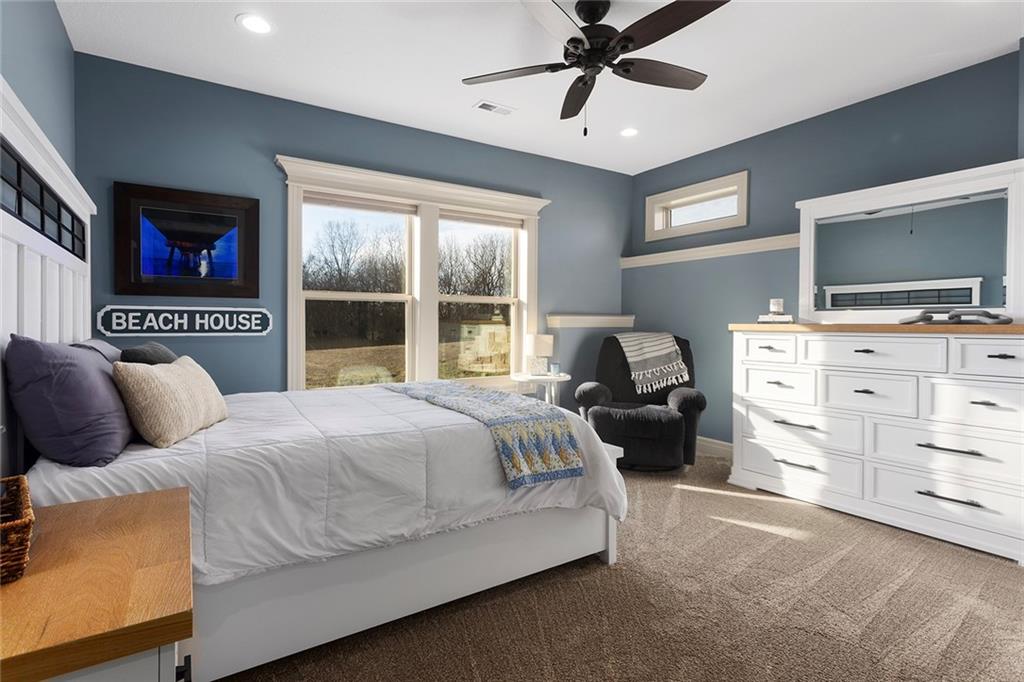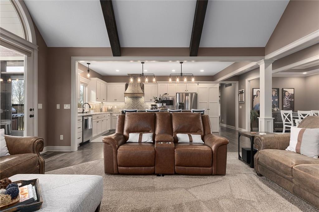 Welcome to Murricane Ranch — a private, gated estate where luxury meets the land. A winding paved drive lined with brilliant Fire Maples creates a breathtaking approach, setting the tone for nearly 25 pristine acres framed by classic Kentucky horse fencing and highlighted by a fully stocked pond. Designed to embrace the natural beauty and uniqueness of the property, this custom-built reverse 1.5-story captures sweeping treed views and unforgettable sunsets from its screened-in covered deck. Inside, the open-concept layout is anchored by a true chef’s kitchen featuring custom cabinet detailing and an amazing walk-in pantry built for both serious cooking and seamless organization. The kitchen flows effortlessly into the main living areas, creating a warm and inviting space ideal for everyday living & entertaining. A thoughtfully designed main-floor pet/mud room adds convenience and function. The private owner’s retreat is a sanctuary of its own, complete with heated floors and a spa-quality shower that elevates daily living. Guest rooms are intentionally positioned for privacy, while the full walkout lower level offers two additional bedrooms, a spacious game room, wet bar, and dedicated media area. Quality construction is evident throughout, including zoned high-efficiency HVAC, engineered laminated floor joists, and a reinforced storm room for peace of mind. The absolutely massive heated 3 car garage (with over 1100 sq ft) accommodates even the largest vehicles with ease to maneuver and provides the option to finish a private apartment above. A 1,500-square-foot heated and cooled outbuilding with office space, bathroom, and an impressive man cave expands the lifestyle possibilities even further. Though privately tucked away, Murricane Ranch is just minutes to I-70 & approximately 20 minutes to Blue Springs—offering convenient access without sacrificing seclusion. This is more than a home; it is a purposefully crafted retreat where land, luxury, & lifestyle converge.
