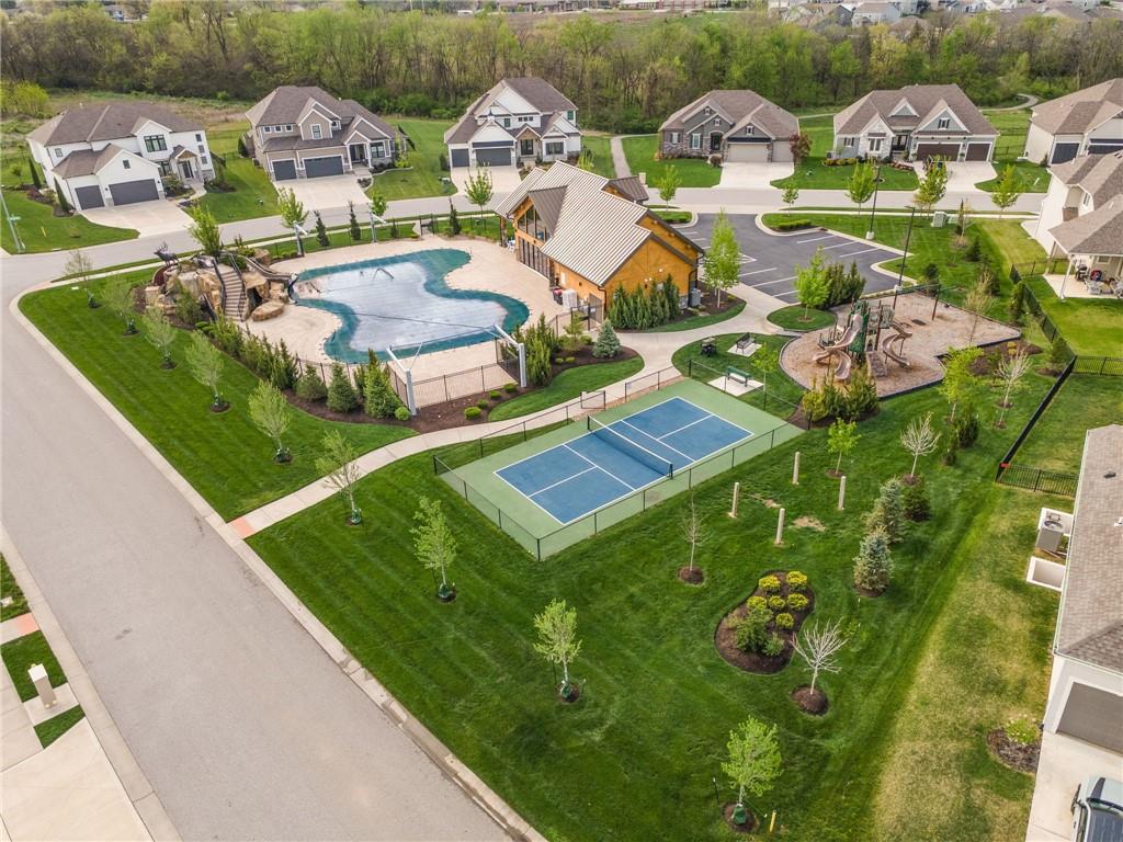 Imagine coming home to pure elegance & zero hassle – this is the incredible value you've been waiting for in one of Lee's Summit's most sought-after villa communities! A striking stucco exterior topped with a durable tile roof delivers timeless curb appeal. Step through the grand entry with its show-stopping intricate ceiling details and sleek modern light fixture – the same sophisticated style flows seamlessly into the main-level primary suite, bathed in warm ambient tray lighting for that perfect retreat vibe. The heart of the home, a jaw-dropping Kitchen that's built for entertaining & everyday luxury: rich stained cabinetry on the oversized island, a stunning marble-inspired herringbone backsplash, premium upgraded appliances & a massive walk-in pantry that makes meal prep a breeze. The primary bath is your personal oasis with a luxurious zero-entry shower (frameless glass door for that open, airy feel), deep soaking tub & gorgeous granite countertops. Plantation shutters and stylish shades that give you effortless control over privacy and sunshine. Step outside to your covered front porch or expansive rear patio, both featuring sleek, epoxy-coated floors built to last. The oversized garage with its own epoxy-coated floor for that showroom shine. Outside, the automatic sprinkler system keeps the lawn lush & green with zero effort on your part. The partially finished basement is a bonus bonanza: a second living area, convenient half bath, egress window ready for a potential third bedroom or guest suite, plus tons of storage. All this low-maintenance bliss comes with a super-affordable $143/month fee covering lawn care and snow removal. The $1,100 annual HOA unlocks resort-style perks: a pool, clubhouse, pickleball court, walking trails & trash. Prime location puts you minutes from shopping, dining, and the charming downtown Lee's Summit. Buyer & Buyer's Agent to verify all info including square footage, zoning, taxes & room sizes during the Inspection Period.