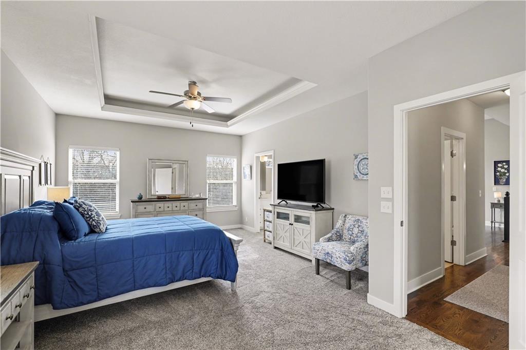 Beautifully maintained and move-in ready! This stunning home offers gorgeous hardwood floors and a light-filled open floor plan perfect for both everyday living and entertaining. The spacious living room flows seamlessly into the kitchen and dining area, creating an inviting and functional layout buyers love. You’ll appreciate the large bedrooms with generously sized closets, providing comfort, flexibility, and ample storage. The primary suite offers room to truly unwind at the end of the day. NEW stair carpet leads you downstairs to family room and two additional bedrooms and full bath. Step outside to enjoy the covered deck overlooking a peaceful wooded backdrop — ideal for morning coffee, evening relaxation, or hosting friends while enjoying added privacy. The front of the home is landscaped with gorgeous and easy care perennial flowers. The lawn was aerated this Fall and over-seeded ready for the Spring! This home offers TONS of storage from the unfinished basement area to the 22' third bay garage. This home delivers space, functionality, and scenic views — all in a desirable Lone Jack location and ONLY 17 minutes from downtown Lee's Summit.