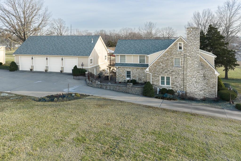 STUNNING 3-BED HISTORIC STONE HOME ON 4+ ACRES WITH SHOP, OUTDOOR KITCHEN, AND 4-CAR GARAGE! This one-of-a-kind property is full of old-world charm and modern comfort, starting with a stone home that features a cozy hearth room with fireplace, granite kitchen counters, built-in appliances including a dual fuel oven and gas cooktop, a formal dining room, and a spacious living room with a massive stone fireplace. Upstairs, the primary suite offers its own private sitting deck, his-and-her walk-in closets, and a private bath, plus two more bedrooms, a full bath with jetted tub, and a bonus room. Outside, you’ll love the brick patio areas with firepit, waterfall, and custom built-in outdoor kitchen—perfect for relaxing or hosting. A huge detached 4-car garage and a 60x100 insulated shop with HVAC, water, bathroom, office, and upstairs storage complete the package, all in a convenient location with easy access to everything.
