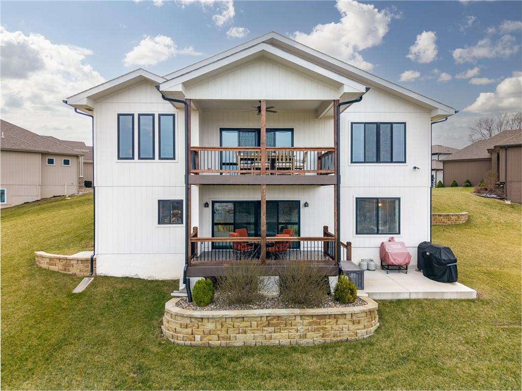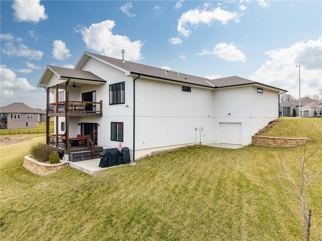 THIS BEAUTIFULLY MAINTAINED 4 BEDROOM, 4.5 BATH, 4+ CAR GARAGE HOME, WITH DIRECT ACCESS TO THE NEIGHBORHOOD WALKING TRAILS, IS THE PERFECT HOME THAT OFFERS A SEAMLESS BLEND OF LUXURY, COMFORT, AND TIMELESS STYLE ACROSS A BEAUTIFULLY FINISHED LAYOUT. ENJOY WATCHING THE KIDS PLAY FROM YOUR LARGE COVERED FRONT PORCH IN THE COMFORT OF YOUR QUIET CUL-DE-SAC. WALK INTO YOUR EXTRA-WIDE ENTRY HALL WITH A UNIQUE BUILT-IN DESK/SHELVES AND THE ORGANIZATION OF THE MUDROOM. GORGEOUS KITCHEN WITH QUARTZ COUNTERTOPS AND A HUGE PANTRY WITH A PREP COUNTER. FAMILY ROOM WITH STRIKING BEAMS, BUILT-INS, AND A FIREPLACE. INDULGE IN WATCHING THE SUNSET ON ONE OF YOUR DOUBLE DECKS WITH LOW-MAINTENANCE SYNTHETIC DECKING, CEILING FANS, AND IRON SPINDLES, ALL SURROUNDED BY BEAUTIFUL, MATURE LANDSCAPING, WITH AN OPEN AREA AND NO NEIGHBORS BEHIND YOUR PROPERTY. HUGE PRIMARY SUITE WITH A BARN DOOR, DOUBLE VANITY, AND AN XL CLOSET THAT OPENS TO THE LAUNDRY ROOM. THIS HOME OFFERS 3 EN SUITE BATHROOMS, WITH BEDROOM 2 AND A FULL BATH ON THE MAIN LEVEL PERFECT FOR YOUR PARENTS. BEDROOMS 3 AND 4 IN THE BASEMENT ALONG WITH A 17x20 FINISHED LIVING ROOM, WET BAR, AND WALK-OUT ACCESS. 4TH CAR GARAGE IS A 3-BAY UNDERCROFT SUSPENDED GARAGE IN THE BASEMENT WITH GARAGE DOOR ACCESS AND ELECTRICAL OUTLETS OFFERING ENDLESS POSSIBILITIES. ADDITIONAL ATTACHED 5X7 STORAGE ON NORTH SIDE OF HOME WITH ELECTRICAL OULET FOR ALL OF YOUR OUTSIDE EQUIPMENT/YARD. MONTICELLO IS LOCATED IN AWARD WINNING BLUE SPRINGS SCHOOLS, WITH A LEE'S SUMMIT ADDRESS. WALKING TRAILS THROUGHOUT THE COMMUNITY, COMMUNITY POOL, & A PERFECT LOCATION NEXT TO BLUE SPRINGS LAKE...STOCKED FISHING, SWIMMING BEACHES, PONTOON RENTAL & MUCH MORE.