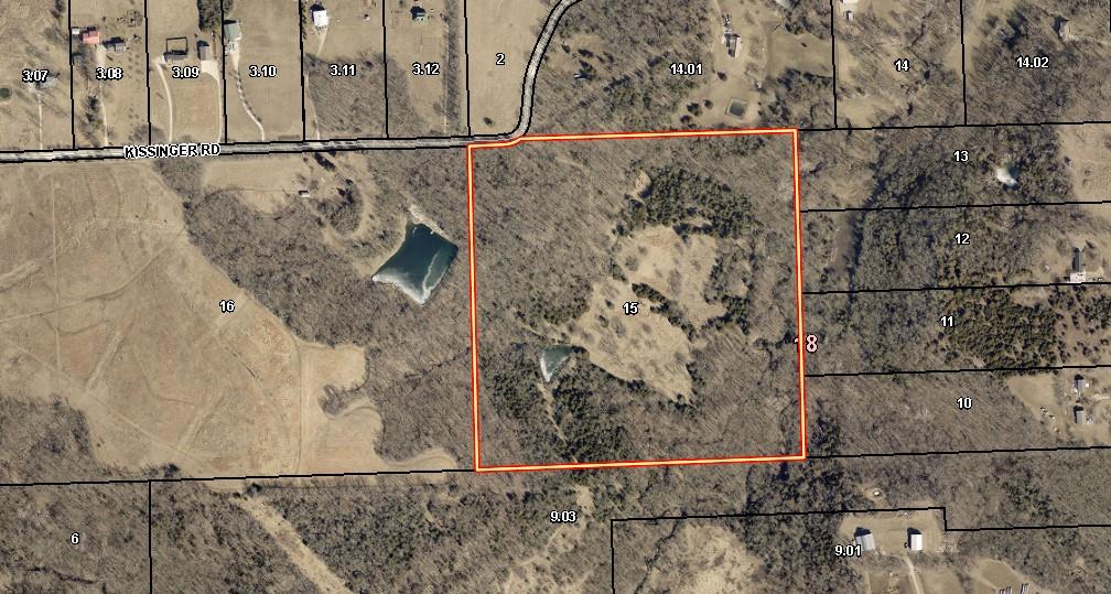 40 ACRE TRACT NORTH OF TONGANOXIE W/ BEAUTIFUL BUILDING SITES, GOOD ACCESSIBLE DRIVEWAY INTO PROPERTY! HUNTER'S PARADISE. A NATURES RETREAT W/BEAUTIFUL TREES, POND, STREAM AND SETTING! MOTHER NATURE AT HER BEST! SEVERAL LAYERS OF ELEVATION TO PICK THE PERFECT SPOT FOR A NEW HOME! Property has approximately 5 to 6 acres of hay ground if so desire. Road work on 235th will offer paved road to Kissinger soon with approximately 3/4 mile of gravel to property. Rural water line in area ends near property line. Checking on availability of water meter and cost to run line. (Rural Water #9)