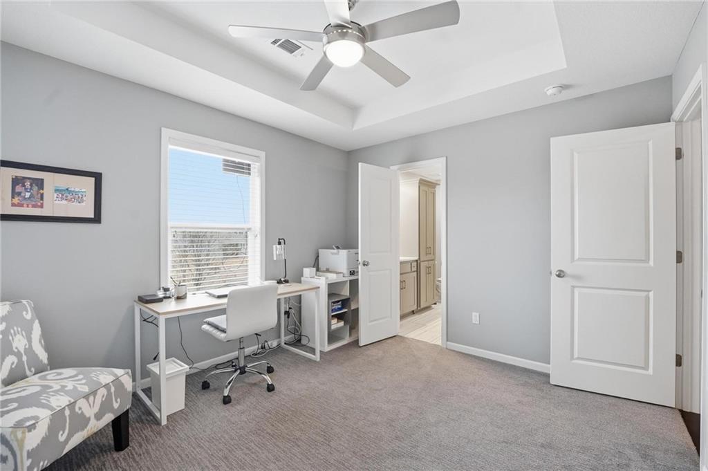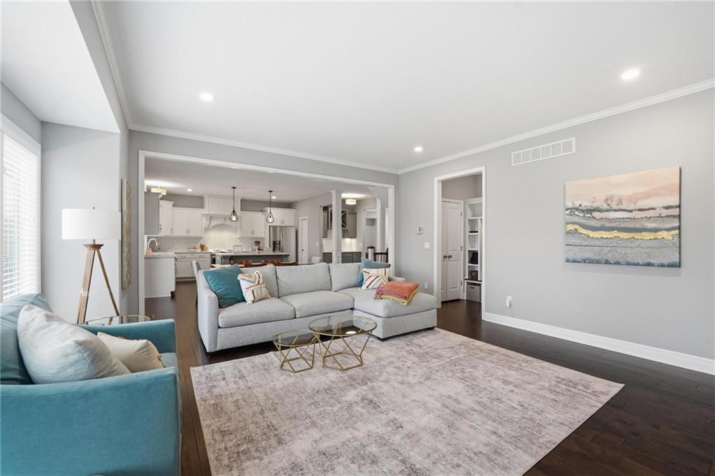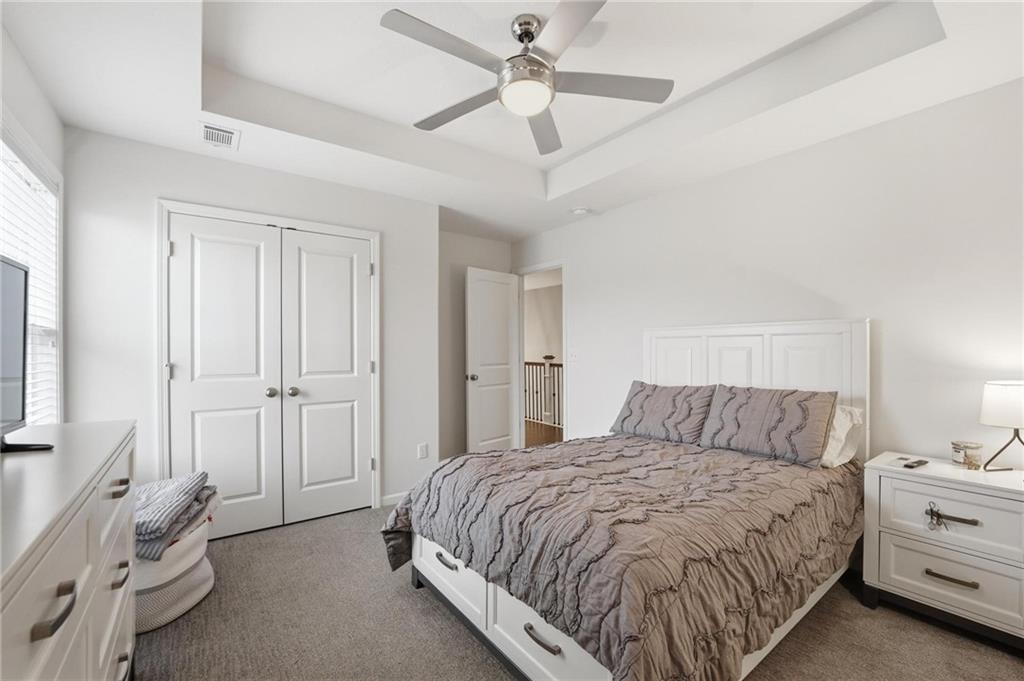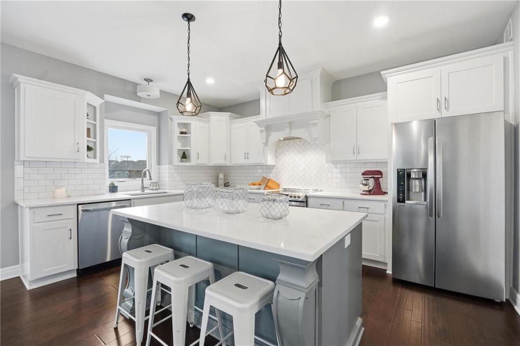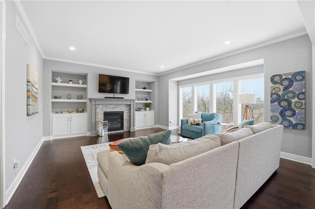 Better than new and thoughtfully designed, this beautiful 2-story home in the desirable Chapel Ridge subdivision offers space, comfort, and scenic views. From the moment you enter, you’re welcomed by a formal dining area perfect for gatherings and special occasions. Just beyond, a convenient butler’s pantry leads into the light-filled kitchen featuring quartz countertops, a large center island, pantry, and plenty of workspace. The adjoining breakfast area provides a comfortable spot for everyday dining. Step outside to enjoy the covered, screened-in Trex deck with sleek metal railings—designed for low-maintenance living—overlooking the fenced backyard and peaceful pond view. The kitchen and breakfast area open seamlessly to the inviting family room, highlighted by a stunning stone fireplace with built-in shelving and cabinetry. All four bedrooms are located on the second floor, each generously sized with ample closet space and direct access to a full bathroom. The oversized primary suite offers a relaxing retreat with double vanities, a jetted tub, dual-headed shower with bench, and a spacious walk-in closet with convenient access to the laundry room. The finished basement expands the living space with a comfortable living area, dry bar, room for game tables, a full bathroom, and a storm shelter, along with abundant storage. With beautiful finishes, functional design, and tranquil pond views, this home truly offers the best of modern living in Chapel Ridge.