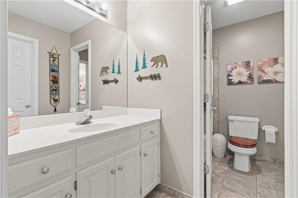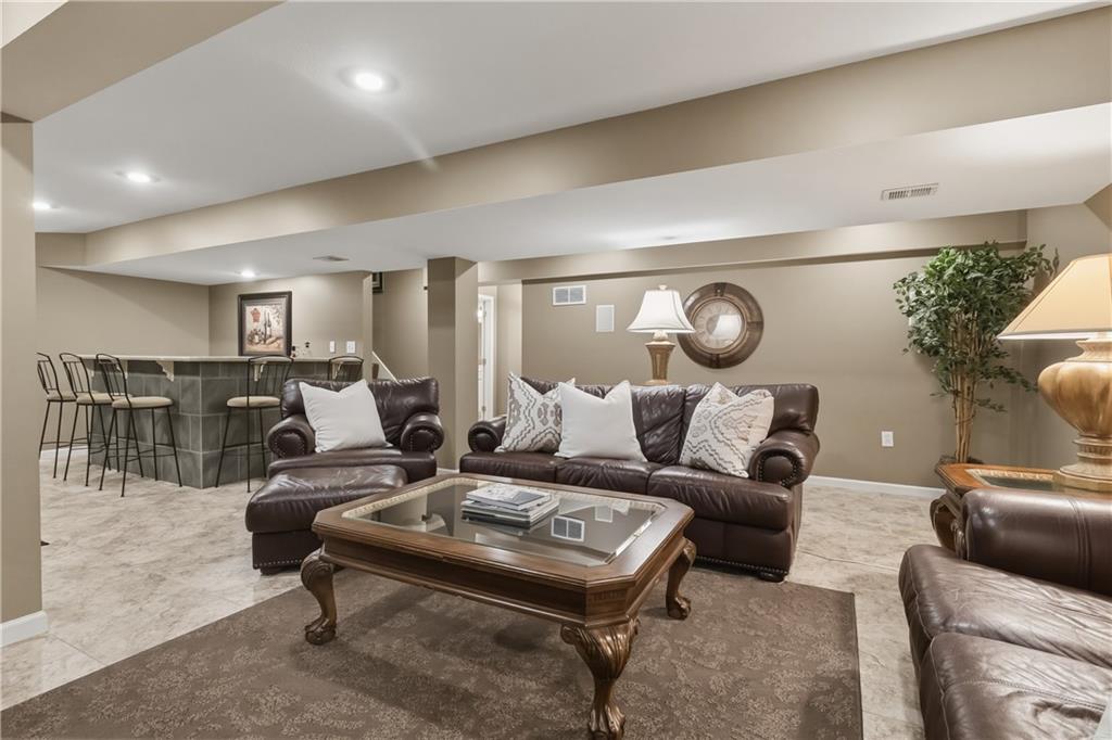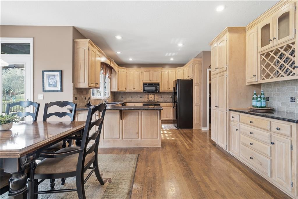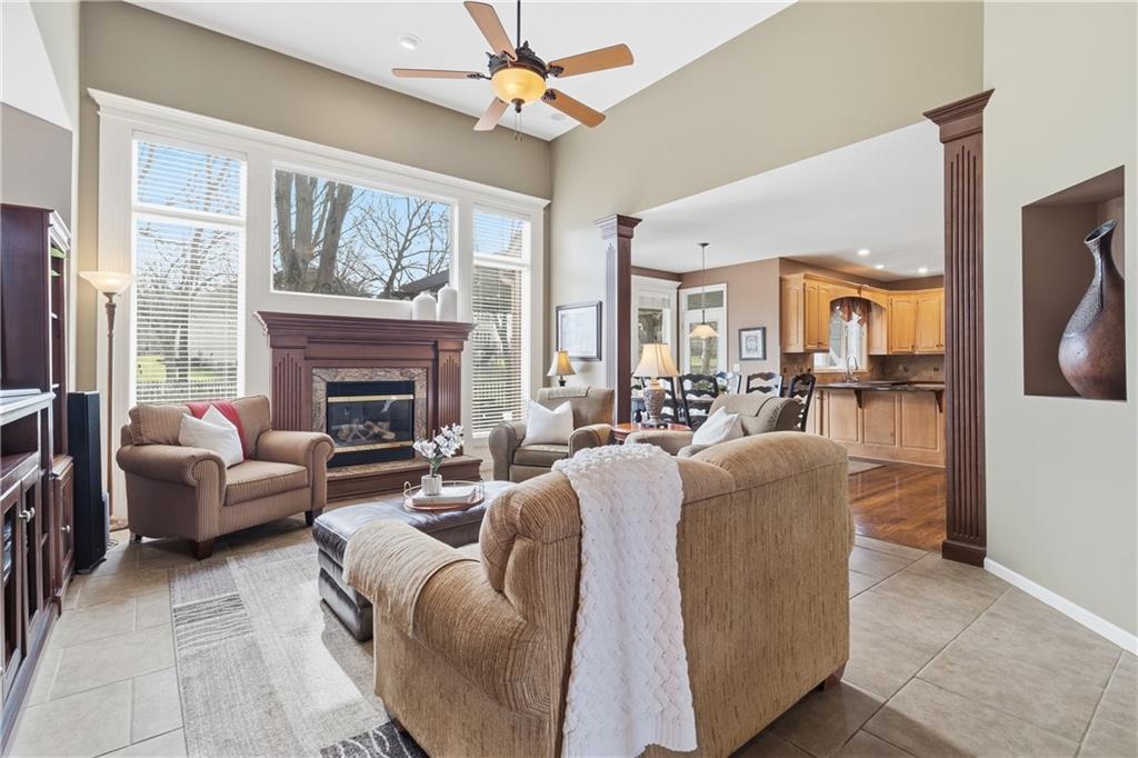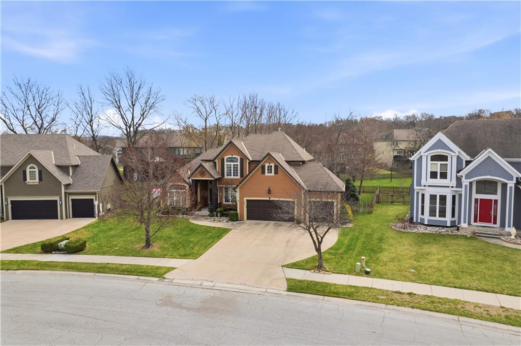 Welcome to this beautifully maintained home in the highly sought-after Oaks Ridge Meadows neighborhood! This inviting property features an open eat-in kitchen that flows seamlessly into the spacious living room, complete with a cozy fireplace with a Heatilator for added efficiency. A formal dining room adds an elegant touch, while the convenient main-floor laundry enhances functionality. The spacious primary suite is also located on the main level, offering comfort and privacy. Upstairs, you’ll find three additional bedrooms, each with en suite bathrooms (one private bath and one Jack and Jill). The finished basement provides additional living space, featuring a second living area, bar, wine rack, a fifth non-conforming bedroom/flex room, and a full bathroom—perfect for guests or recreation. Additional highlights include a 3-car garage with a second oven, ideal for entertaining or extra cooking space, a covered patio, and a fenced yard with tranquil fountains and a dual-zoned sprinkler system for both lawn and landscaping. The home is equipped with a dual-zoned HVAC system, an air cleaning system for enhanced indoor comfort, and a backup generator for added peace of mind. Located close to parks, shopping, highway access, and right across from the elementary school in the Blue Springs School District, this home truly has it all! Lower level finished square footage is approximate from owner.