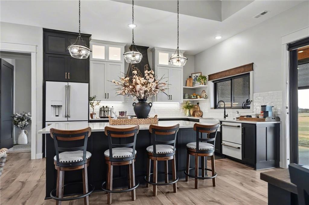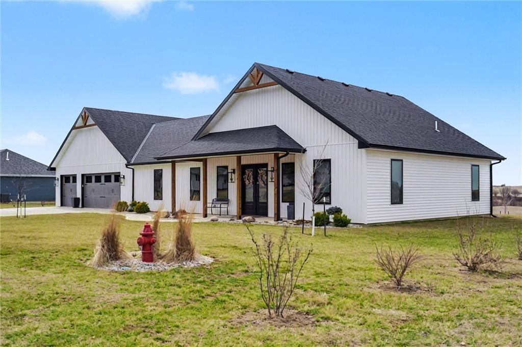 You walk in and feel like you are entering a personal retreat. You'll love the open floor plan, large windows, high ceilings, and beautiful views throughout. Kitchen features high end appliances, custom cabinets and a large island with ample storage making it a perfect place to gather with family and friends. This home was built with a purpose, it has no stairs, wide doorways, an oversized three car garage with ample parking, garage storage and a safe room for emergencies. Beautifully landscaped. This home was built with a Doniphan County Restoration grant and has 10 more years of tax rebates saving you tens of thousands of dollars. Covered porch on the back of the house has heavy custom screens mounted on the perimeter of the porch that work off of a remote. House backs to the future Doniphan Hills Golf Course. As the golf course gets completed, the demand is sure to go up. Come take a look.