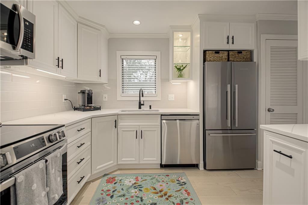 Charming Ranch-Style Home – Perfect for Downsizing or First-Time Buyers Welcome to this beautifully updated & maintained 3-bedroom, 2 full bath ranch-style home offering 1,191 square feet of comfortable, easy living. Designed with convenience in mind, this single-level layout is ideal for those looking to downsize or purchase their first home. Step inside to a bright and inviting living space that flows effortlessly into the kitchen and dining area. Gorgeous engineered white oak, wide plank flooring has been added to main living area make cleaning a breeze! The kitchen features quartz countertops, new subway tile backsplash, stainless steel appliances, fresh white cabinetry and ample workspace, with main-level laundry conveniently located just off the kitchen—making everyday tasks simple and accessible. The spacious primary bedroom features a walk in closet plus two additional closets for bonus storage; the ensuite bathroom has double sinks with solid surface counter top includes a private full bath, while the second bedroom and additional full bath provide flexibility for guests or family. Conforming 3rd bedroom has beautiful glass French doors that open into the living room. Currently being used as a dining room but would be a perfect home office. Out back, you’ll find a patio area perfect for relaxing or entertaining, overlooking a level backyard that’s easy to maintain and ideal for outdoor enjoyment. With its functional layout, manageable size, and low-maintenance design, this home offers comfort, practicality, and charm all in one. Don’t miss this opportunity to own a move-in ready ranch that’s just the right size!