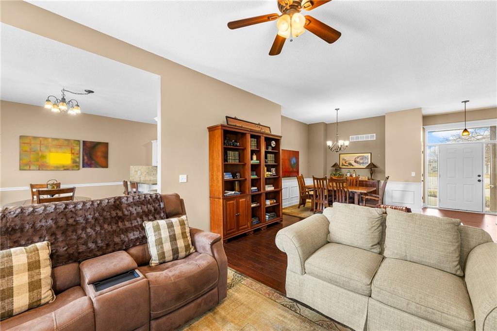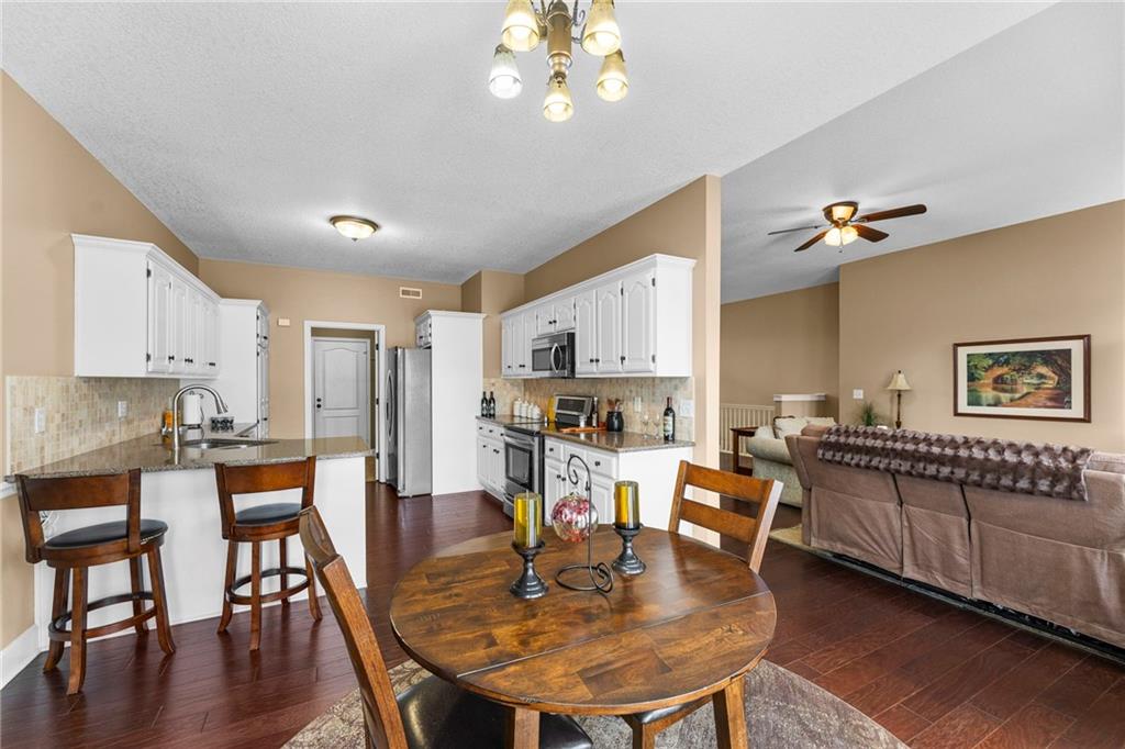 Welcome home to this well-maintained ranch in the desirable Villas of Northbrook subdivision! This 2-bedroom, 2-bathroom home offers almost 1550 square feet of MAIN level living space, including a spacious 1,492 sq ft of unfinished lower level space -- perfect for a REC room, home office, additional living area or bedroom and bathroom. The open layout features a comfortable main floor with soaring ceilings, engineered hardwood floors, main floor laundry and lots of natural light. Spacious kitchen with granite countertops, painted cabinets, stainless steel appliances and eat in kitchen make this home perfect for entertaining. Primary bedroom leads into the spacious primary bathroom with a double sink, oversized walk-in closet and shower with tile surround. Step outside to your private patio, ideal for relaxing or entertaining guests. The attached 2-car garage provides convenience and ample storage. Located in the Liberty School District with a new water heater in 2024 and a new furnace and A/C in 2019! Don't miss this opportunity to enjoy single-story living with room to grow in one of Kansas City's established communities with lawn and snow removal included in the HOA fee. Fridge, Washer and Dryer all STAY!