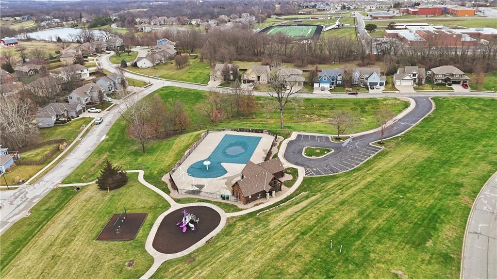 Welcome home to this spacious 5 bedroom, 3 bath home with a desirable open-concept layout! The inviting great room features a cozy fireplace and flows into the kitchen with stainless steel appliances, stained cabinets, and a sunny breakfast area. Enjoy outdoor living with both a deck and oversized patio, ideal for gatherings or just relaxing on a beautiful day. The unfinished Walkout basement provides the opportunity to create additional living space and easy access to the backyard. The 3-car garage offers ample parking and storage. Situated on a large corner lot and conveniently located near neighborhood pool and playground! Just a short trip to the Legends Area for shopping, restaurants, and more!