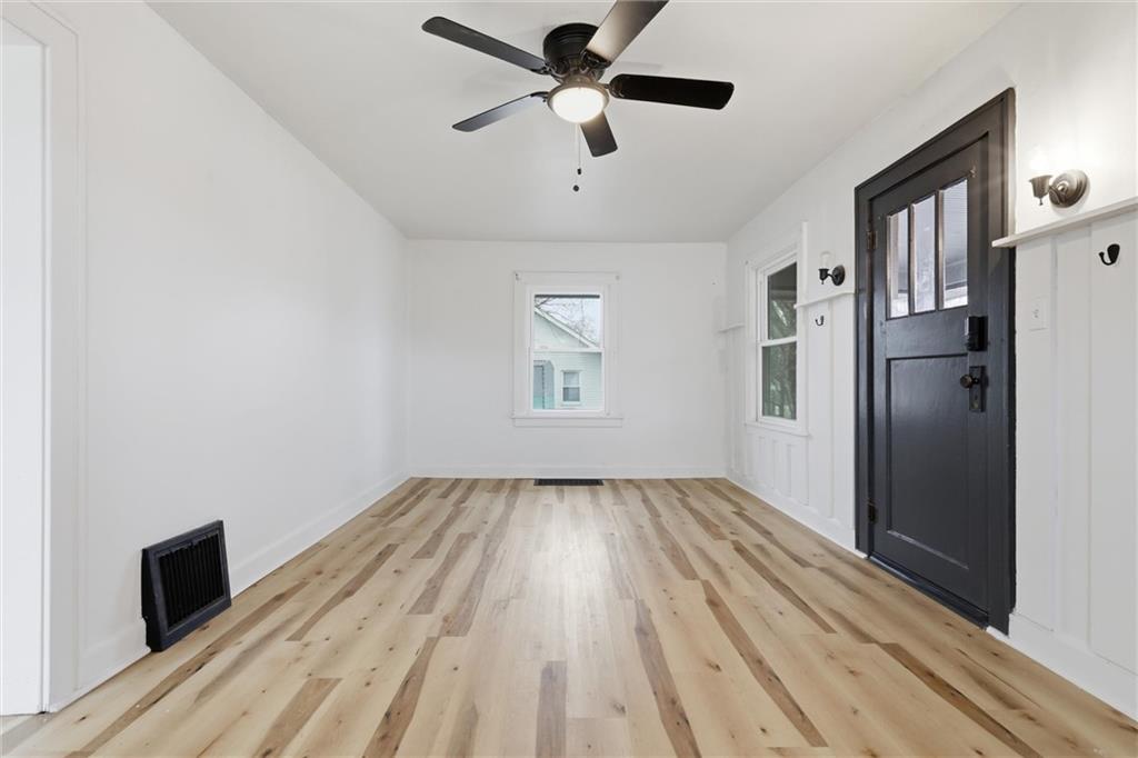 This darling bungalow-style ranch has charming curb appeal, generous room sizes, updates throughout, and a short drive to all the most popular spots in downtown Kansas City! Major improvements provide added peace of mind, including new windows in 2024 and new electrical, furnace, A/C and humidifier in 2025! The well-thought out floor plan features stylish and hearty light wood toned LVP flooring, fresh white walls with tasteful accent colors, and charmingly updated kitchen and bath. Step into the screened front porch where you’re sure to enjoy many peaceful cups of coffee, and then the home welcomes you into the spacious main living area with plenty of natural light to illuminate the space. The adjacent formal dining is perfect for entertaining or enjoying a cozy meal with family, and the darling kitchen looks like something straight out of a cottage but with a modern twist. Coveted sage green cabinets beautifully compliment the natural wood ceiling and modern fixtures. Behind the kitchen, a quaint sunroom could also be used as a home office or luxurious walk-in pantry. On the other side of the home, a fully updated full bath, two guest bedrooms and a lovely primary bedroom with electric fireplace complete with perfectly sized, one-level living home. Downstairs in the partially finished basement, you will find a large rec area that would be perfect for a game room or home gym, as well as a separate laundry space with a second full bath. All of this awaits you on a large fenced lot with a fire pit, an extra-long driveway and a detached garage. Welcome home!