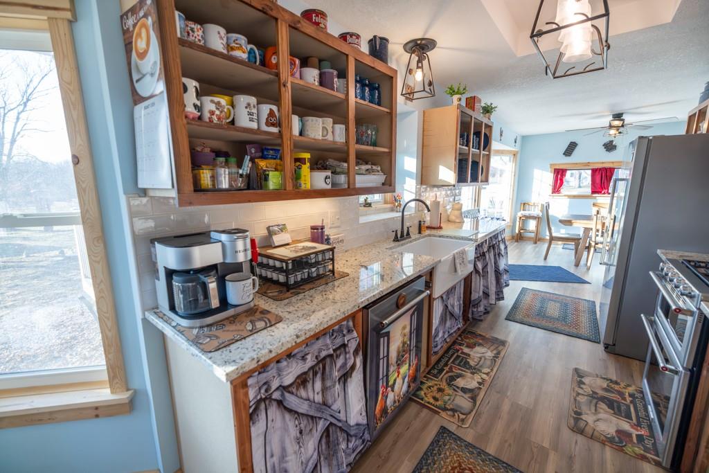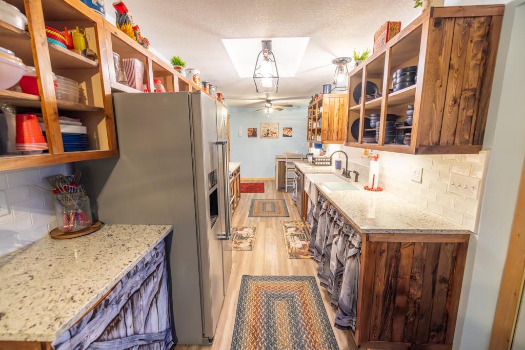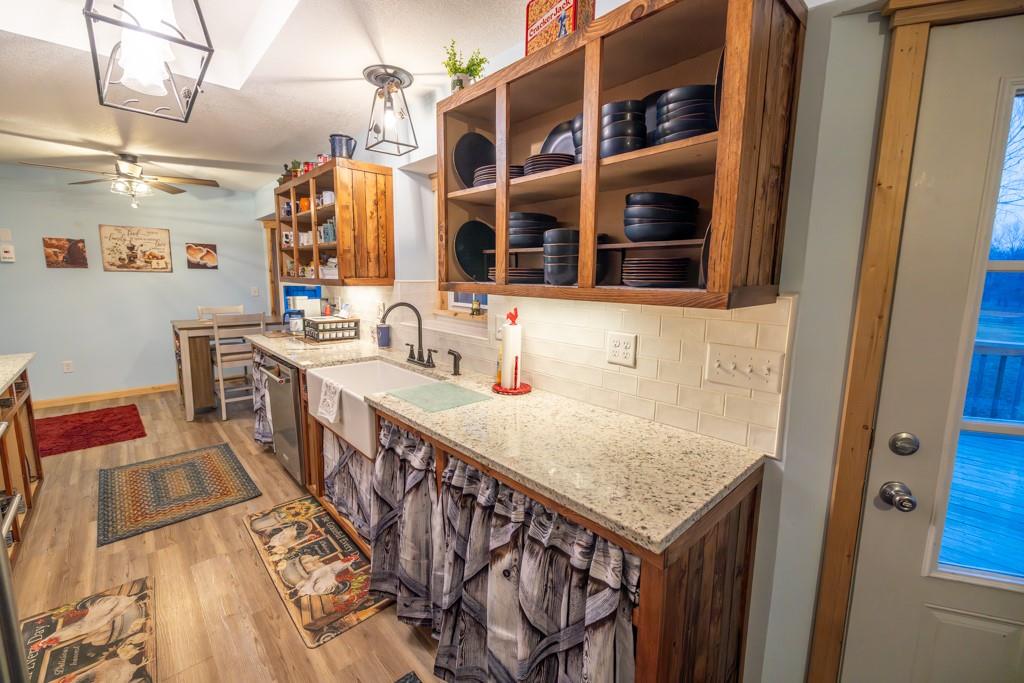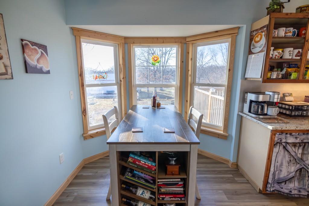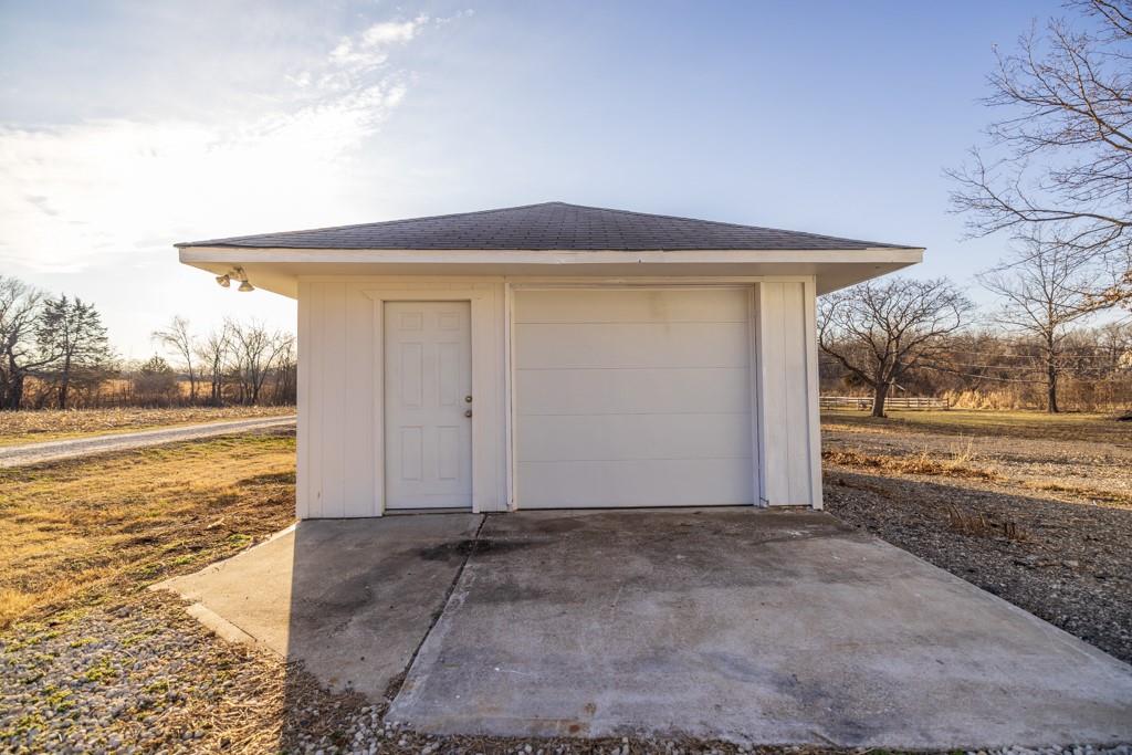 This charming, fully remodeled 2 bedroom, 2.5 bathroom home sits on a 1.17 acre lot just outside Belton, Missouri, offering a peaceful rural feel while remaining conveniently close to town amenities, schools, and highways. The house has been completely updated from top to bottom, with everything new. Modern kitchen, granite countertops, fresh cabinetry, updated bathrooms with fixtures, tile work, and vanities. New carpet and flooring throughout. Fresh interior and exterior paint, energy-efficient windows, new HVAC system, updated electrical and plumbing, and a newer metal roof for worry-free living. The main level includes a welcoming living and dining area that flows into the kitchen, a convenient half bath for guests, and one bedroom with a full bath. The other bedroom is located just outside the other full bath in the hallway. The home feels bright and airy with plenty of natural light. Outside, the generous 1.17 acres provide ample room for outdoor activities, gardening, or future expansion, all with a nice mix of open yard and mature trees for privacy. The standout features are the two detached shops/workshops. A large 30'x55' shop perfect for serious hobbyists, mechanics, woodworking, vehicle storage, or small business use, with concrete floors, electricity, lighting, and insulation. A smaller 16'x24' shop is great as additional storage, a she-shed/man cave, or specialized workspace. This property blends modern comfort in a like-new home with outbuildings on a sizable lot, ideal for those wanting space, functionality, and a quiet setting just minutes from Belton. It's turn-key ready for immediate enjoyment! So don't miss out on this rare opportunity and schedule your showing today!