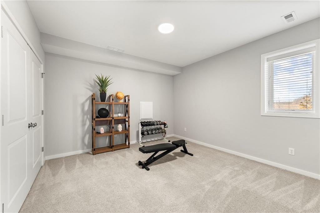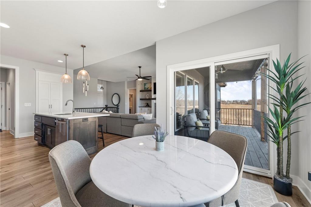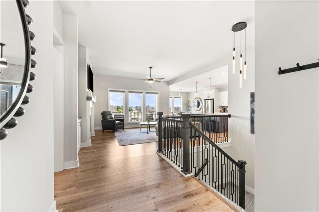 Stunning View of the Golf Course! From Tee Box to the Green par 3 View! Walkout lot on a cul-de-sac! This reverse 1.5 story home has everything you need on the main level. Enter into the great room and instantly see the spectacular view of Hole 17! Kitchen with walk-in pantry and quartz counters. Drop Zone/Boot Bench and 1/2 Bath just off the garage and kitchen. Covered deck is perfect for enjoying a cup of coffee while taking in the sunrise and the scenery! Primary suite includes bedroom with LARGE walk-in closet, bathroom with walk-in shower, laundry right off the closet, and office area. Finished lower level Family Room walks out to great fenced yard! Family Room perfect for an entertainment center. Two bedrooms and a full bath as well. Plenty of storage in the unfinished area. Fresh interior paint 2 years. Stained covered Deck. Maintenance includes comprehensive lawn care, snow removal, exterior painting, and replacement of roof and gutters as needed. Also includes access to neighborhood pool, play area, pickleball & tennis courts. Falcon Lakes golf course is a public course with a bar and grill, "The Nest". Highly rated Basehor-Linwood School District! Conveniently located just off K-7 for easy access to all parts of the metro area. Just 10 minutes to the Legends Shopping and Entertainment District and 30 minutes to the airport.