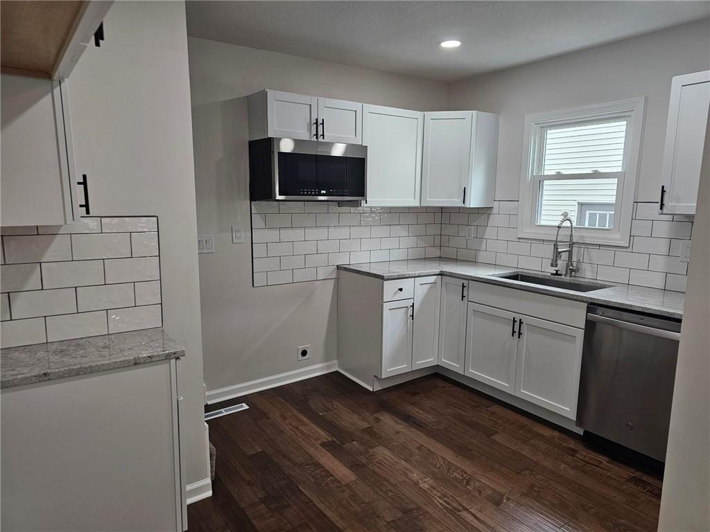 Completely rebuilt from the studs up — this stunning 4-bedroom, 2-bathroom home offers the perfect blend of modern upgrades and timeless charm! No detail was overlooked in this full renovation, featuring all new electrical, plumbing, HVAC, roof, and brand-new appliances — giving you peace of mind for years to come. Step inside and be welcomed by a huge living room filled with natural light, creating the perfect space for entertaining or relaxing with family. The thoughtfully designed layout offers two spacious bedrooms and a full bathroom on the main floor, plus two additional bedrooms and another full bathroom upstairs, providing flexibility and comfort for families of all sizes. Enjoy mornings on the covered front porch and evenings hosting friends on the large back patio overlooking the expansive backyard — ideal for kids, pets, gatherings, or even adding your dream outdoor features. The home also includes a full unfinished basement, offering incredible storage space or the opportunity to finish it exactly the way you want. With everything brand new and beautifully updated, this home delivers style, space, and worry-free living all in one incredible package. Homes renovated to this level don’t come around often — schedule your showing today!