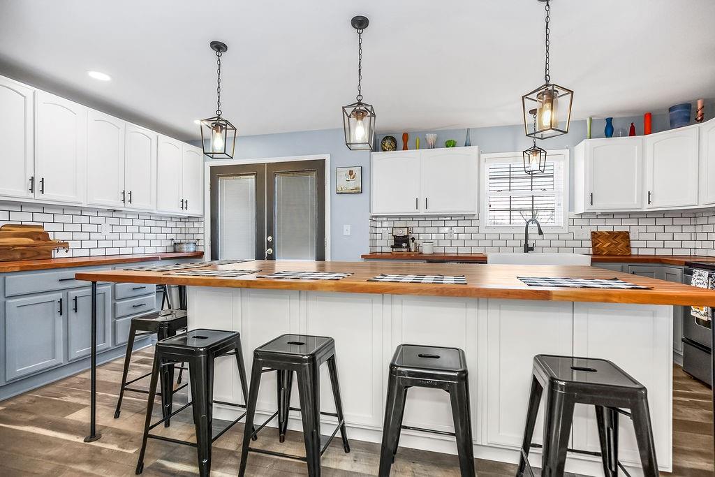 Beautifully updated home offering the perfect blend of modern upgrades, outdoor living, and functional space inside and out! The exterior has been thoughtfully transformed with a newly manicured gravel driveway, extensive rock landscaping, fresh paint on doors, shutters, and garage door, plus sanded and stained wood beams on the front porch. Enjoy outdoor living with a new firepit area, upgraded Deckorators composite decking and railing, and a spacious 15x42 (630 sq ft) deck—perfect for entertaining. A saltwater pool with custom drainage system and a 2,000 sq ft garden add to the outdoor appeal. Located within walking distance to a nature trail near Clinton Lake, this property offers both privacy and outdoor adventure. Inside, the home features a fully repainted interior, new LVP flooring on the main level, and brand-new carpet upstairs. The kitchen is a showstopper with a huge 40 sq ft island, added cabinetry, butcher block countertops, new sink, and updated lighting throughout. Additional updates include re-screened windows, new stair treads and railing, and updated lighting with dimmer switches. The finished basement offers additional living space with an updated full bath and remodeled stairs and railing. Barnboard accents in the dining room and half bath add warmth and character. The barn offers incredible versatility with a new concrete floor, added second level, electric on both floors, painted rafters, and framed workspace. Concrete has also been poured under the overhang for a future three-season room near the pool.