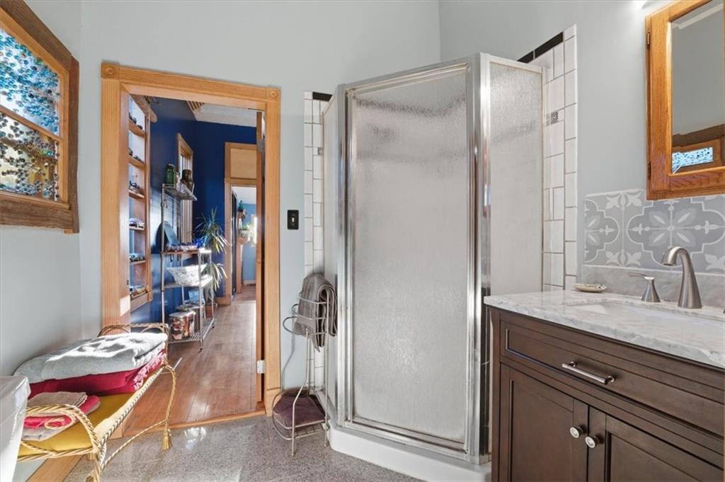 The price is right for this double lot. Kansas City will host the Federation Internationale de Football Association (The World Cup). What a time to own property to welcome our neighbors. This property sits on a double lot. The city cleared along the fence line, allowing an unobstructed view of the skyline. The possibilities for this property/land are unlimited—such a quaint neighborhood. Sellers are avid gardeners, so surprises of all sorts will be blossoming. Updated kitchen, bath, and some fresh paint. The full stone basement holds possibilities, too. Don't miss out!