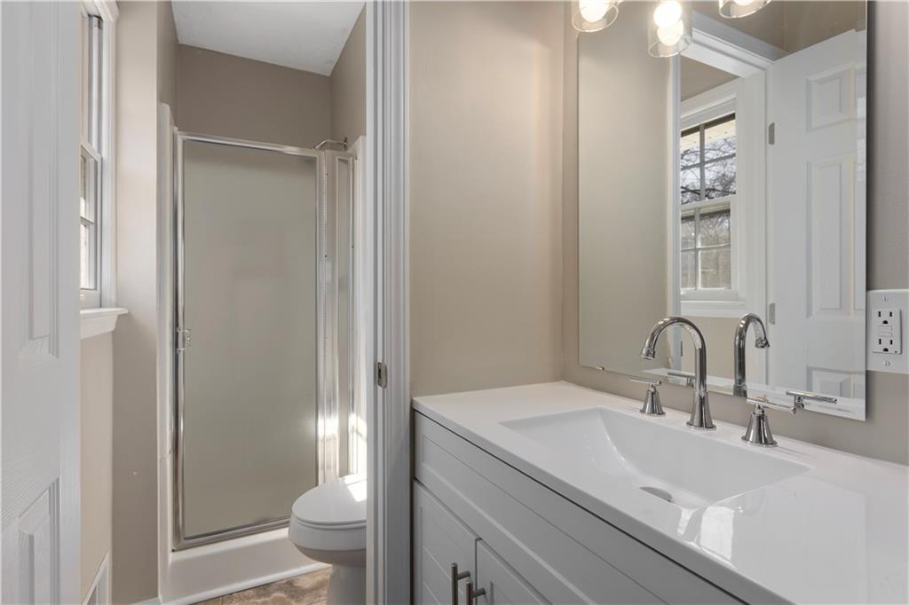 Welcome home to this spacious and updated 3 bedroom, 3 bath brick home on a corner lot, offering incredible versatility and room to grow with so much NEW! With 2 additional non-conforming bedrooms in the fully finished basement (making this a 5 bedroom home) and second kitchen, this home provides flexible living options for guests or multi-generational living. The main level features a fully updated kitchen with stainless appliances and kitchen island, seamlessly flowing into a warm and inviting hearth room highlighted by a stunning brick fireplace, the perfect gathering space. The side by side windows bring in so much natural light! A formal family room with new carpet and elegant bay windows look out on the quaint covered front porch, perfect for entertaining or relaxing. Down the main level hallway you will find a fully updated bathroom with double vanity, Laundry area, three large bedrooms with walk-ins and hardwoods. Primary bedroom has it's own private En-suite. Main level laundry and a bonus second laundry room in the basement. Downstairs, the finished basement expands your living space with two non-conforming bedrooms, a spacious family room with second brick fireplace, a full bathroom, a secondary kitchen and a safe room (suspended under the front porch). The finished basement has its own entrance, making this an excellent potential for extended stays or private guest quarters. 2 car garage around back is gated, also additional parking in the front driveway with carport. Tons of parking space for cars or an RV. NEW HVAC and NEW retaining wall by the carport. This home has it all and close to shopping, the arts district and highway access. Turnkey and ready for YOU!