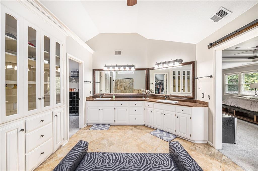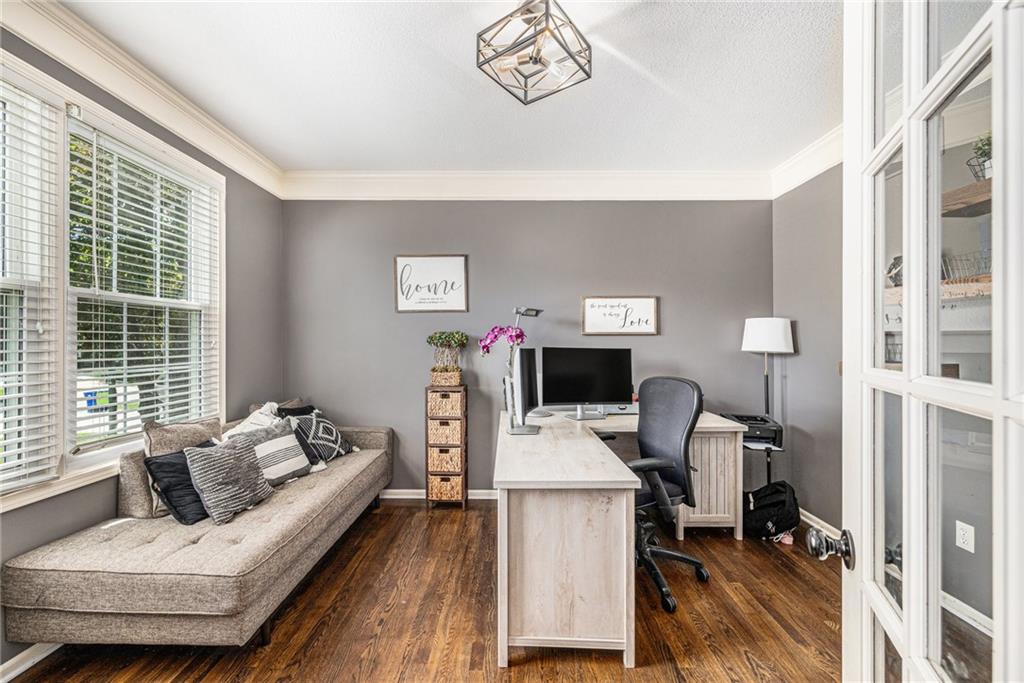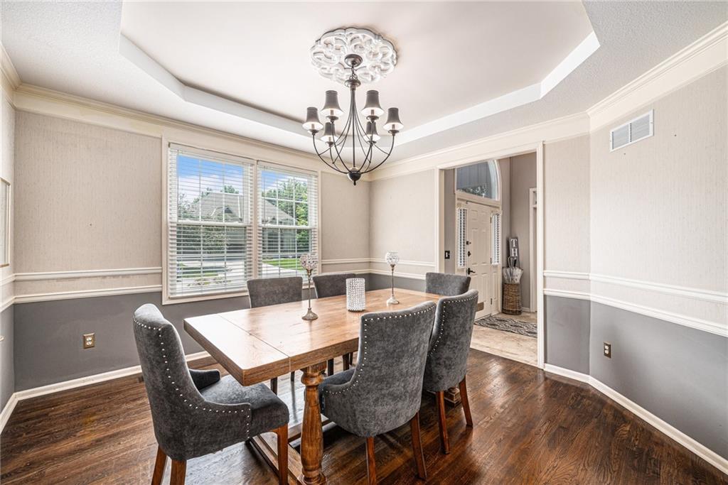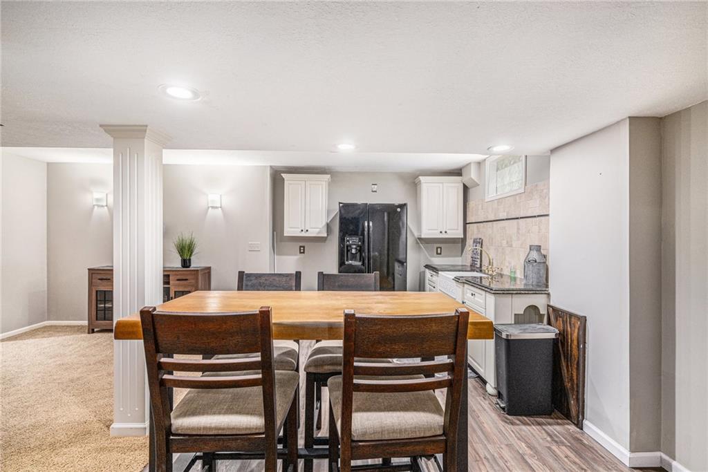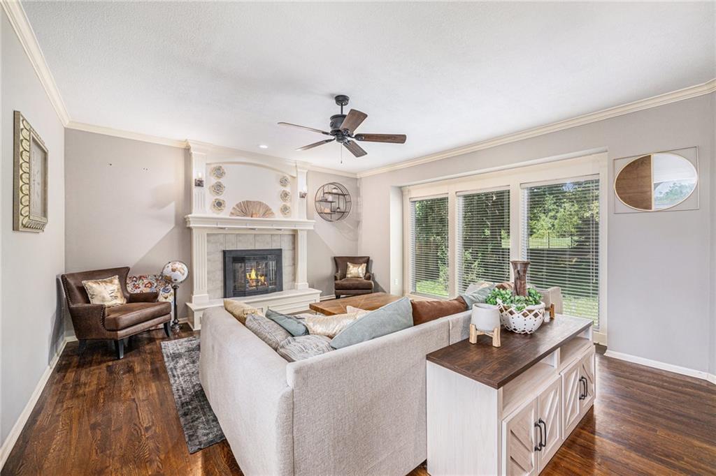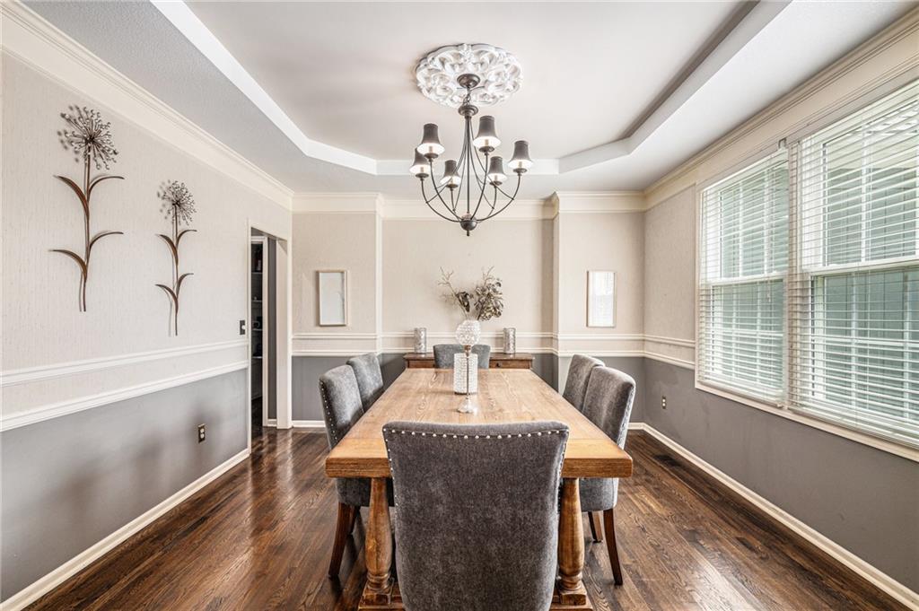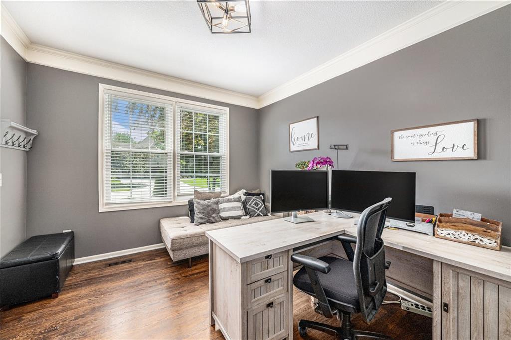 Welcome home to this expansive two-story home with the perfect blend of comfort and luxury. The main floor is equipped with a huge kitchen with plenty of storage, breakfast area, and hearth room, which make entertaining in this space a breeze. The formal dining room, office, and living room on this floor give space for everyone. Enjoy the warmth and ambience of fireplaces in both the hearth room and living room. Upstairs, you will find an incredibly enormous primary bedroom with a cozy sitting area. The ensuite bathroom is complete with dual vanity, jetted tub, and separate shower, as well as a closet big enough to hold even the largest of wardrobes. Three more generously sized bedrooms, all with attached bathrooms, round out the level. In the basement, you will find a large open area with a kitchen-style bar, plenty of counter space, and storage, great for use as a hang-out area with media, gaming tables, or easily expanded for additional living space, guest rooms, or a home office. The private backyard includes a large deck. To allow the next owner to personalize the home, the seller is offering a $5,000 flooring allowance with an acceptable offer. This home is a must see.