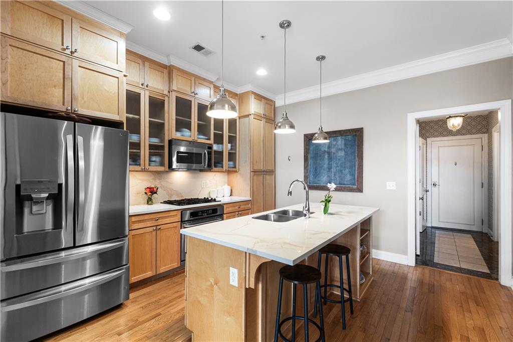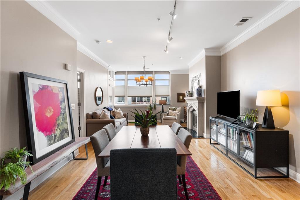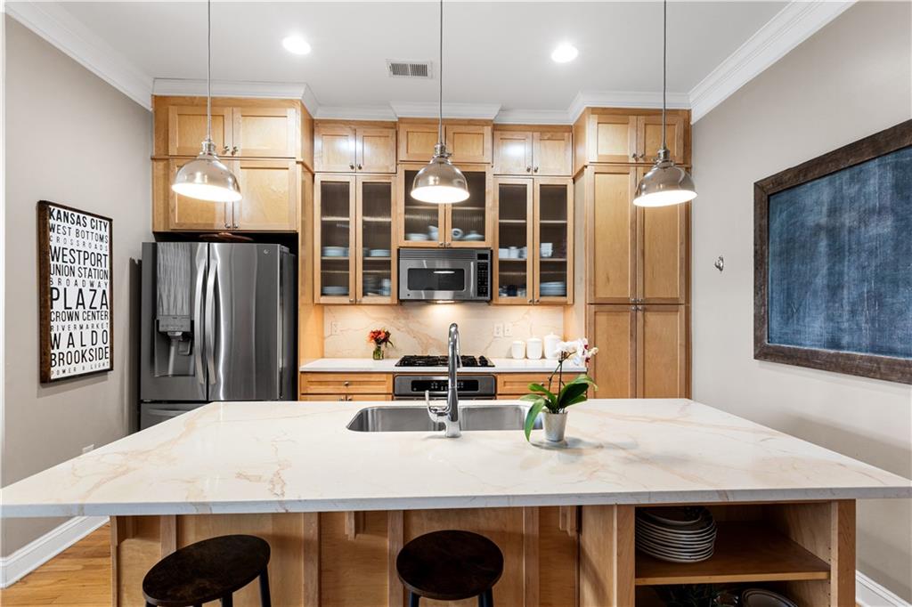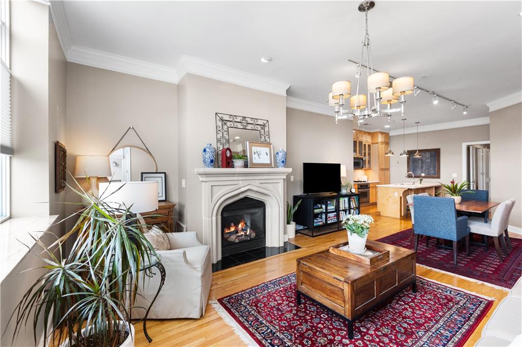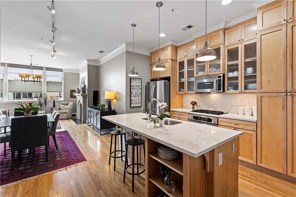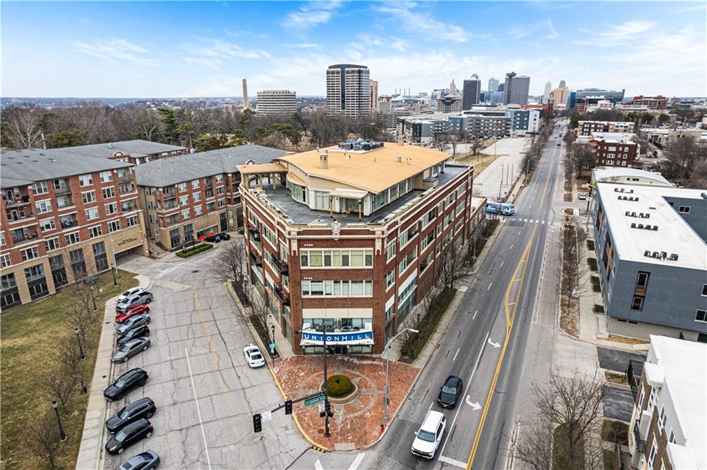 Enjoy elevated city living in the vibrant Union Hill neighborhood—where convenience, culture, and comfort come together effortlessly. From the moment you step out of the beautifully appointed lobby of the historic Greenlease Cadillac building, you’re just moments from Crown Center, the Crossroads Arts District, and the streetcar—putting the very best of the city right at your doorstep. This thoughtfully designed two-bedroom residence features an open, light-filled floor plan perfect for both everyday living and entertaining. The updated kitchen flows seamlessly into the dining and living areas, highlighted by rich hardwood floors, a cozy gas fireplace, and elegant electronic window shades that offer both natural light and privacy at the touch of a button. Step outside to your own private covered terrace—an ideal retreat for morning coffee or evening relaxation. The spacious primary suite offers a versatile nook, perfect for a home office or serene sitting area. Unwind in the spa-inspired bathroom, complete with a large jetted soaking tub, walk-in shower, and timeless subway tile finishes. Additional perks include secure garage parking, extra storage for seasonal items, low HOA dues, and the remaining benefit of a 50% tax abatement—making this not just a beautiful home, but a smart investment. If you’ve been looking for effortless urban living with style and substance, this is the one.