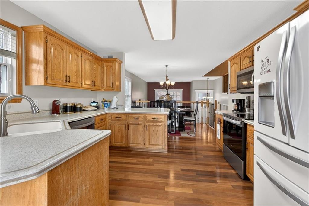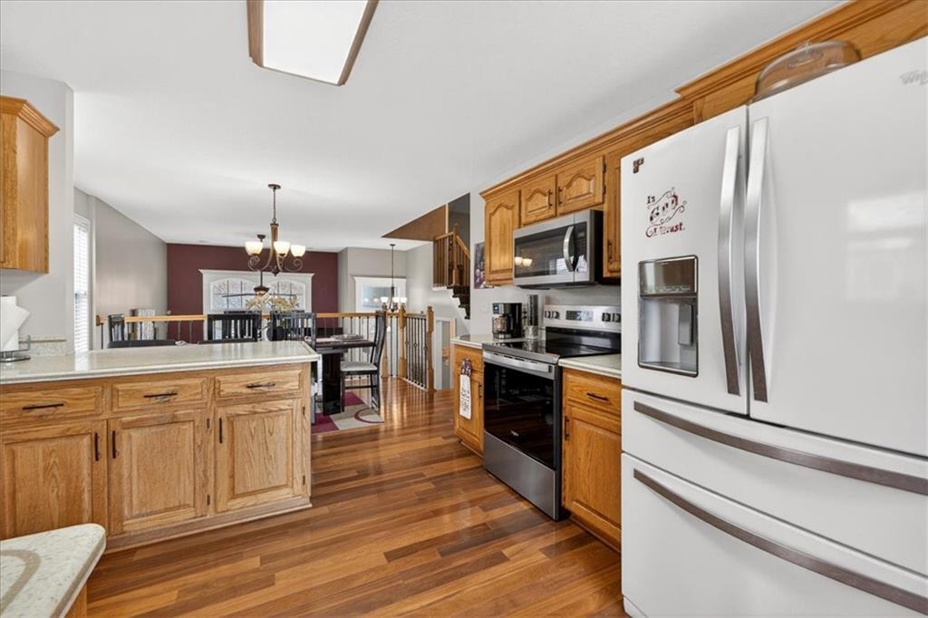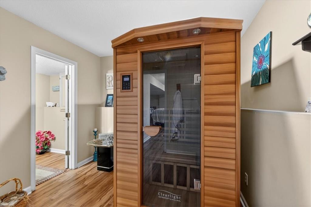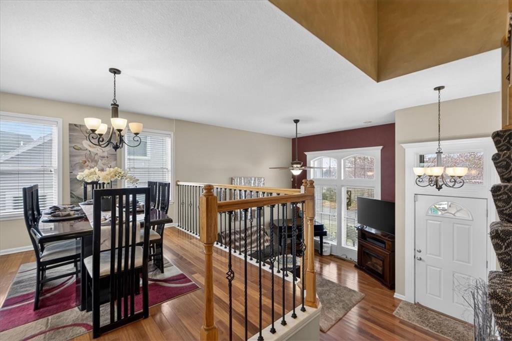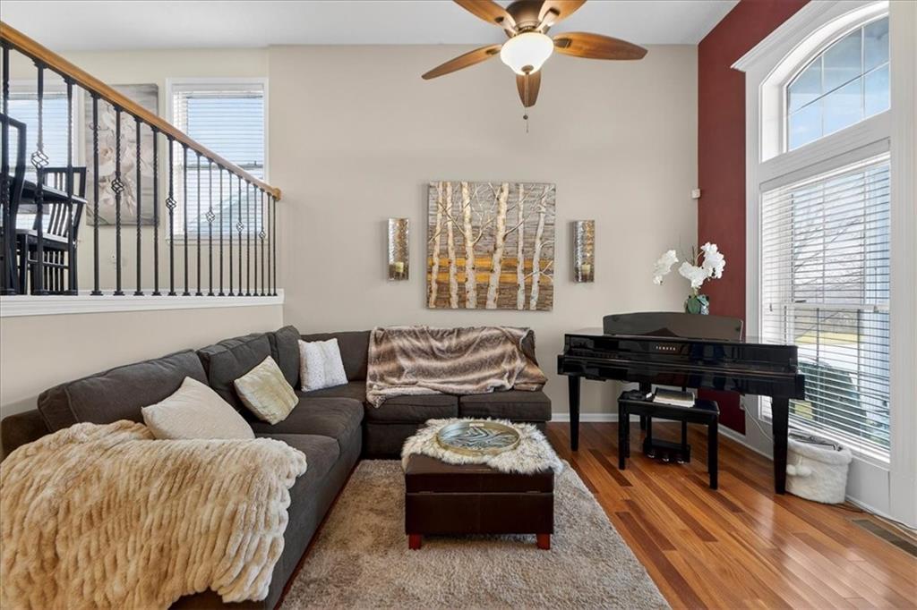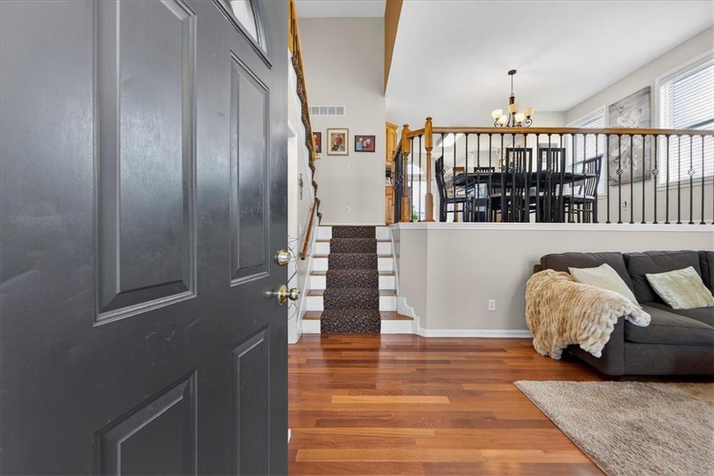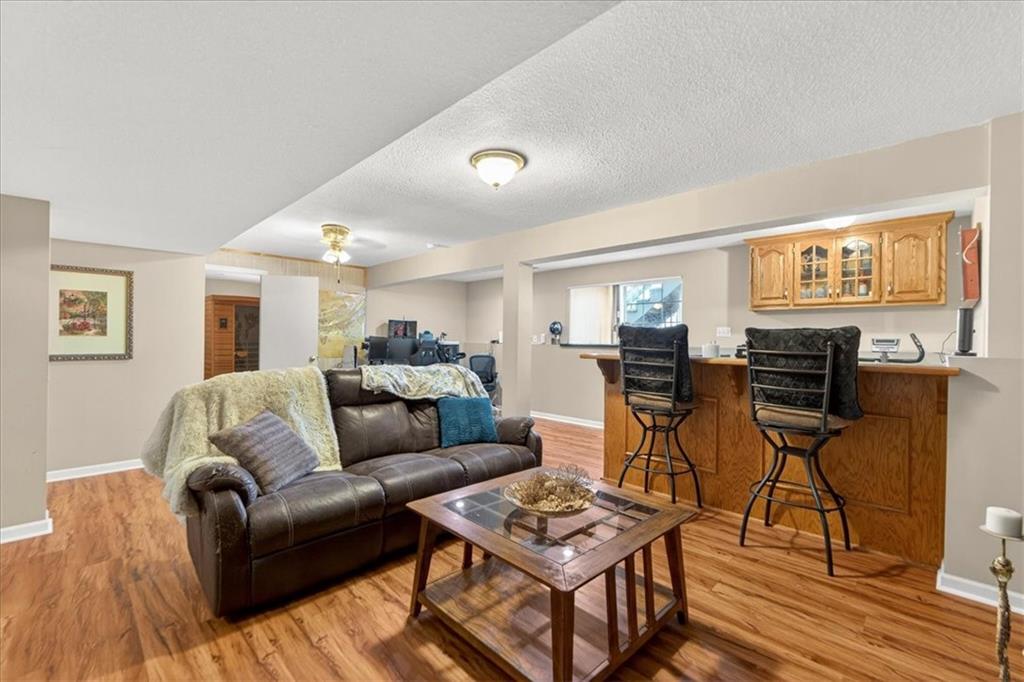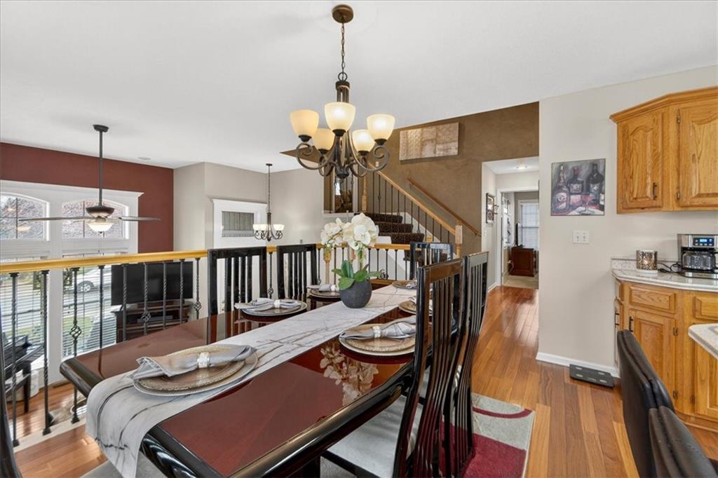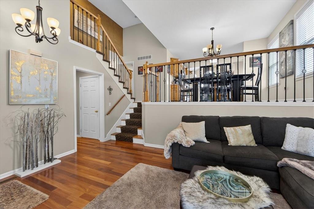 IMMACULATE!! Designer touches shine throughout this stunning 3-bedroom, 2.5-bath home featuring soaring ceilings and a layout ideal for multigenerational living. Pride of ownership is evident in every detail! The spacious primary suite is privately situated on the upper level, with two additional bedrooms on the second level. The finished daylight basement offers incredible flexibility with a family room, wet bar, studio-style bedroom area, flex space, and half bath — perfect for guests, extended family, or entertaining. A sauna (originally $5,000) stays with the home! Enjoy outdoor living on the two-tier deck overlooking green space and a playground area behind the home! Additional features include an in-house humidifier, abundant storage, and generous closet space throughout. This is a home full of pride — move-in ready and truly exceptional!