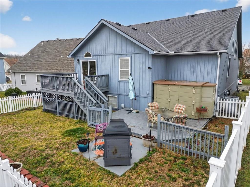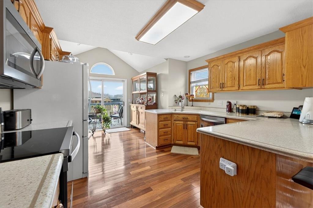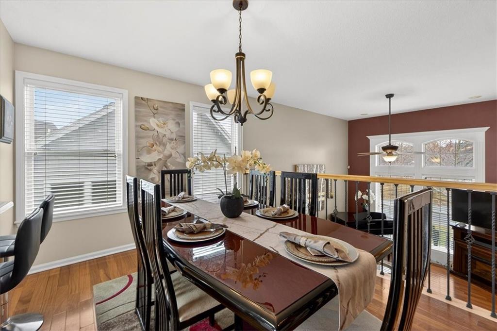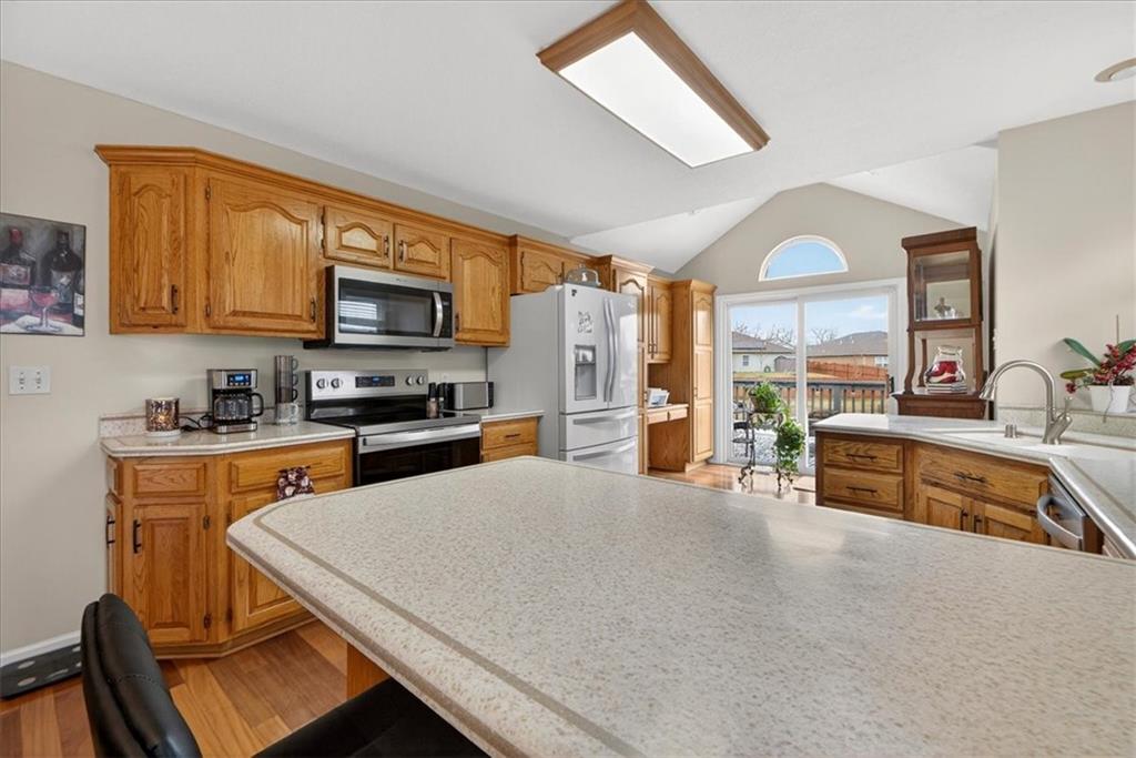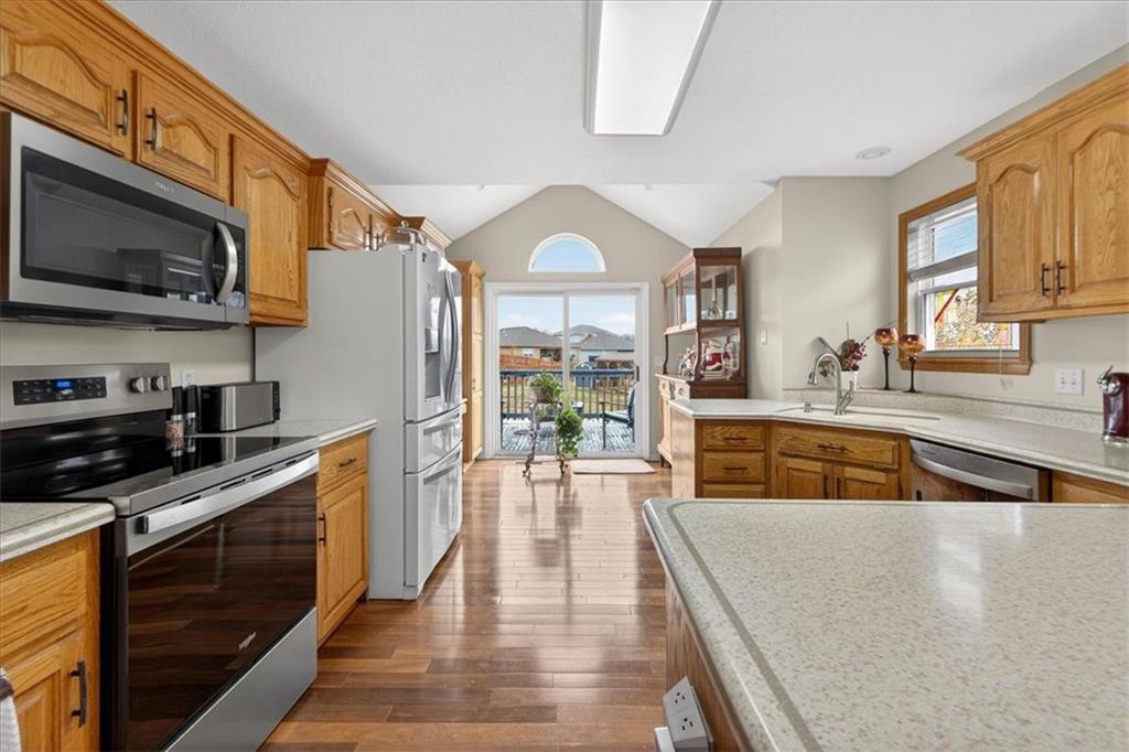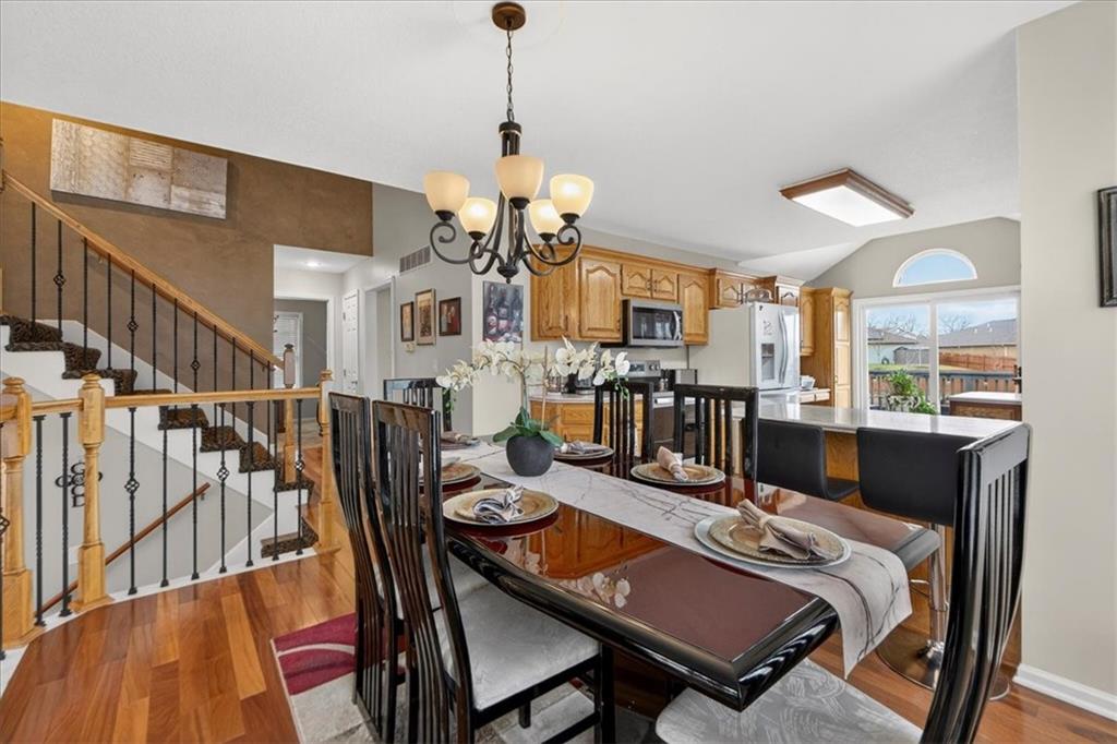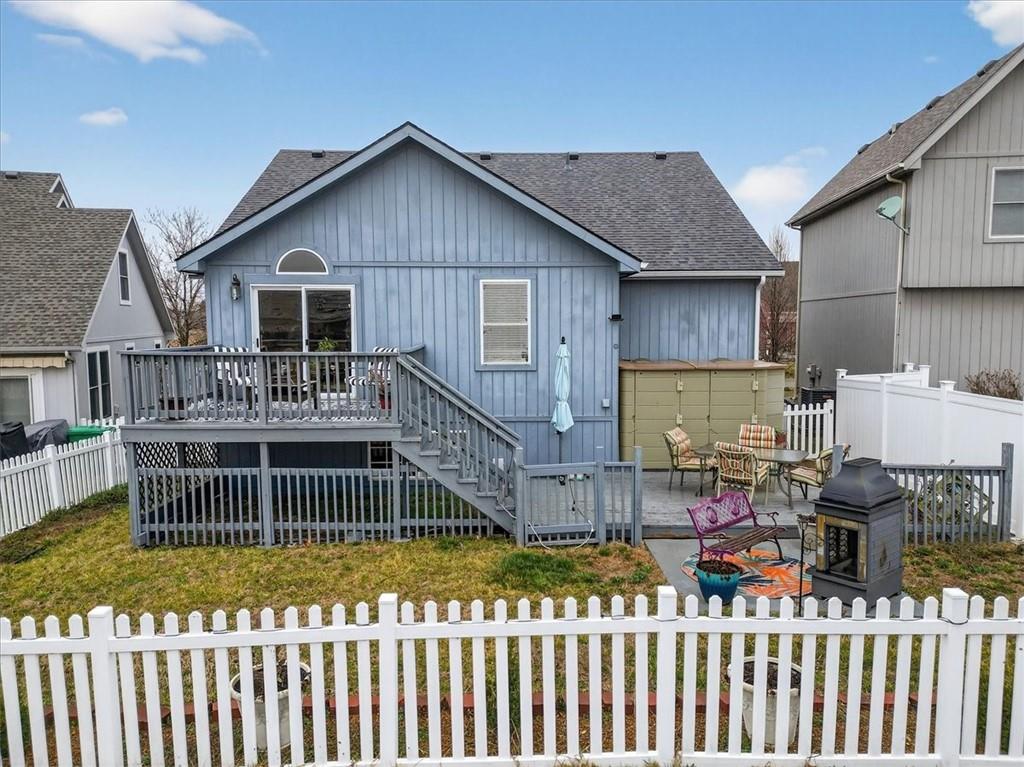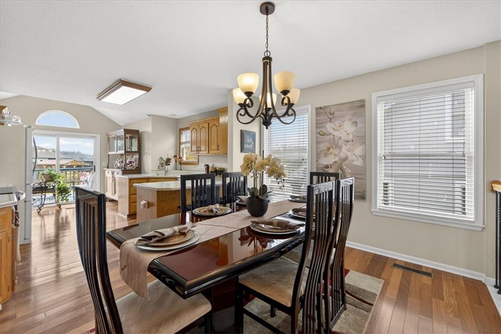 IMMACULATE!! Designer touches shine throughout this stunning 3-bedroom, 2.5-bath home featuring soaring ceilings and a layout ideal for multigenerational living. Pride of ownership is evident in every detail! The spacious primary suite is privately situated on the upper level, with two additional bedrooms on the second level. The finished daylight basement offers incredible flexibility with a family room, wet bar, studio-style bedroom area, flex space, and half bath — perfect for guests, extended family, or entertaining. A sauna (originally $5,000) stays with the home! Enjoy outdoor living on the two-tier deck overlooking green space and a playground area behind the home! Additional features include an in-house humidifier, abundant storage, and generous closet space throughout. This is a home full of pride — move-in ready and truly exceptional!