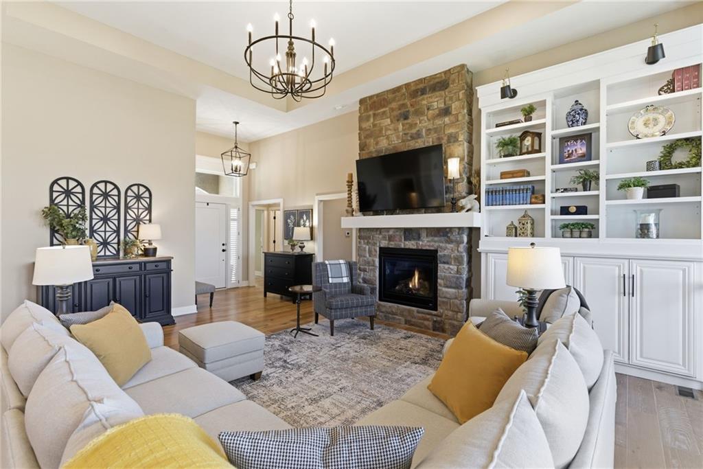 Saying this home has all the bells and whistles is an understatement! SO MANY UPDATES! And MAINTENANCE PROVIDED! No need for a shovel or a lawn mower--this home has that covered! Walk in & immediately admire the 14 foot cathedral ceiling in the great room! Stunning 5 in white oak floors, custom lighting, & plantation shutters adorn the main level living space! You'll love relaxing in front of the stone fireplace w/custom built shelves on each side! Next, venture into the gourmet kitchen with large, quartz island, gas cooktop & custom cabinets to the ceiling! 9 custom drawers under your cooktop make pot and pan storage so convenient! The walk-in pantry offers exceptional design with shelves/outlets for appliances so those are tucked out of the way! Do you love dining outdoors? You'll enjoy many nights eating dinner on your screened-in composite deck with a mount for your TV! Enjoy sitting out there admiring the huge almost 1/2 acre lot (that you don't mow!). Unwind each night in the primary bedroom with custom barn door to your primary bathroom. Huge walk-in tile shower, granite top vanity with under cabinet lighting and porcelain floors are just some of the features worth mentioning! Laundry room adjacent to your bathroom is convenience at its finest! As you go downstairs, be sure not to miss the large picture windows with custom motorized shades! Lower level welcomes you with a custom built electric fireplace surrounded by shelves. You won't even realize you're in the lower level as it boasts 11 foot ceilings and a 2ND FULL KITCHEN! Kitchen features quartz countertops, under cabinet lighting, custom cabinets, refrigerator, stove, dishwasher, microwave and WALK-IN PANTRY (And YES, you read that right! This is the lower level!) Want to grill? Head on out to your screened in patio with built-in gas grill! Wiring for a hot tub already available on this patio as well! Tons of storage! Don't miss out on this one! This immaculate home is the true definition of a GEM!