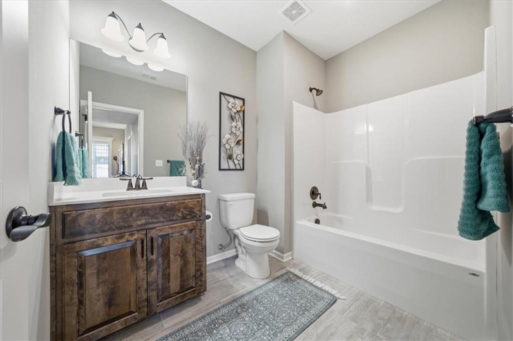 In the highly sought-after Waterford neighborhood, this rare reverse 1.5-story Wilshire II by Hoffmann Custom Homes offers 4 bedrooms, 3 full baths, and a 3-car garage. The open-concept main level features a bright, airy living space, a private primary suite, and a flexible second bedroom with a nearby full bath. The kitchen includes a spacious walk-in pantry, and just beyond, an extended deck steps down to a patio and fenced backyard—perfect for entertaining. The finished lower level features two more bedrooms, a full bath, a large rec room with an entertainment bar, and abundant storage, including a seasonal closet. An in-ground sprinkler system completes the home’s convenience and curb appeal.