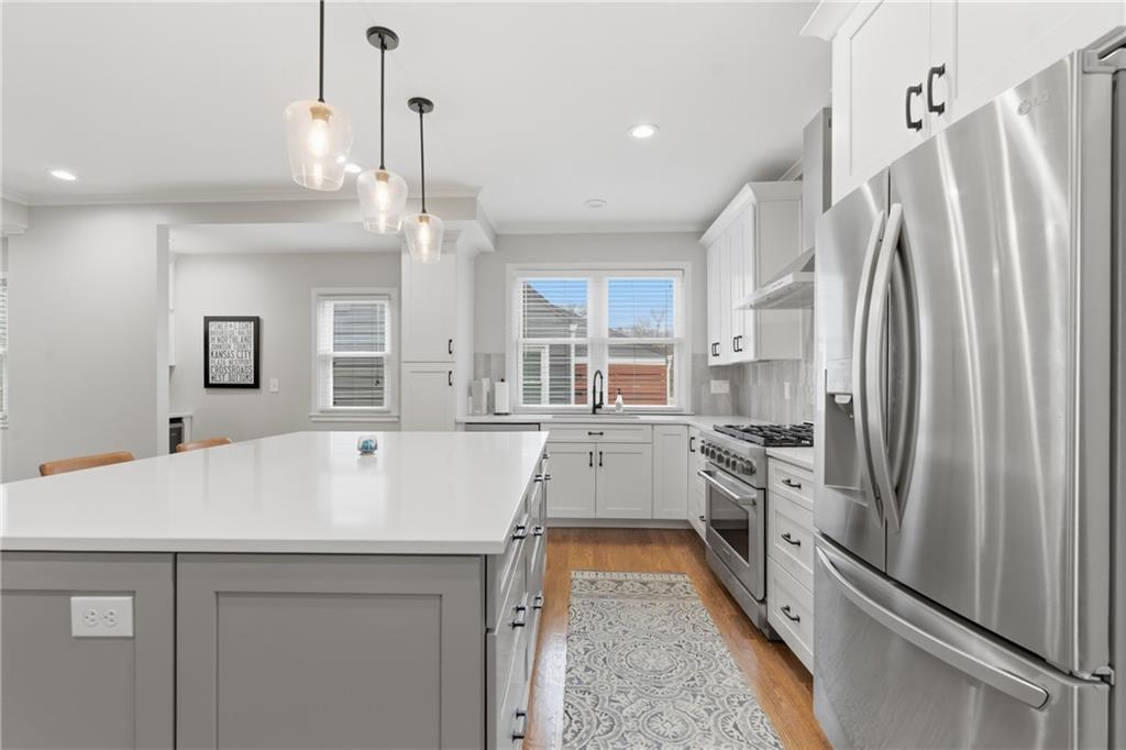 Located in the heart of Mission, this extensively updated home blends classic charm with modern updates throughout. Natural light fills the space, highlighting the refinished hardwood floors and bright, open layout. The renovated kitchen features quartz countertops, custom cabinetry, a center island with seating, pantry storage, tile backsplash, and updated appliances, including a built-in bar refrigerator. Raised ceilings and a cozy fireplace make the main living area feel open, yet inviting. Bathrooms have been refreshed with updated fixtures, and the home has been freshly painted. The home offers three bedrooms, including a spacious primary suite, giving flexibility for everyday living, guests, or a home office. An oversized three-car garage and extended rear driveway provide ample parking, including room for recreational vehicles. Outside, you’ll find updated exterior paint, new landscaping, a newer concrete driveway and sidewalk, and a cedar deck with built-in flower beds. The home is serviced by two HVAC systems for added comfort. Ideally located near Johnson Drive shops, local dining, and quick highway access, this well-maintained home offers both convenience and charm.Please see supplements for a complete list of improvements.