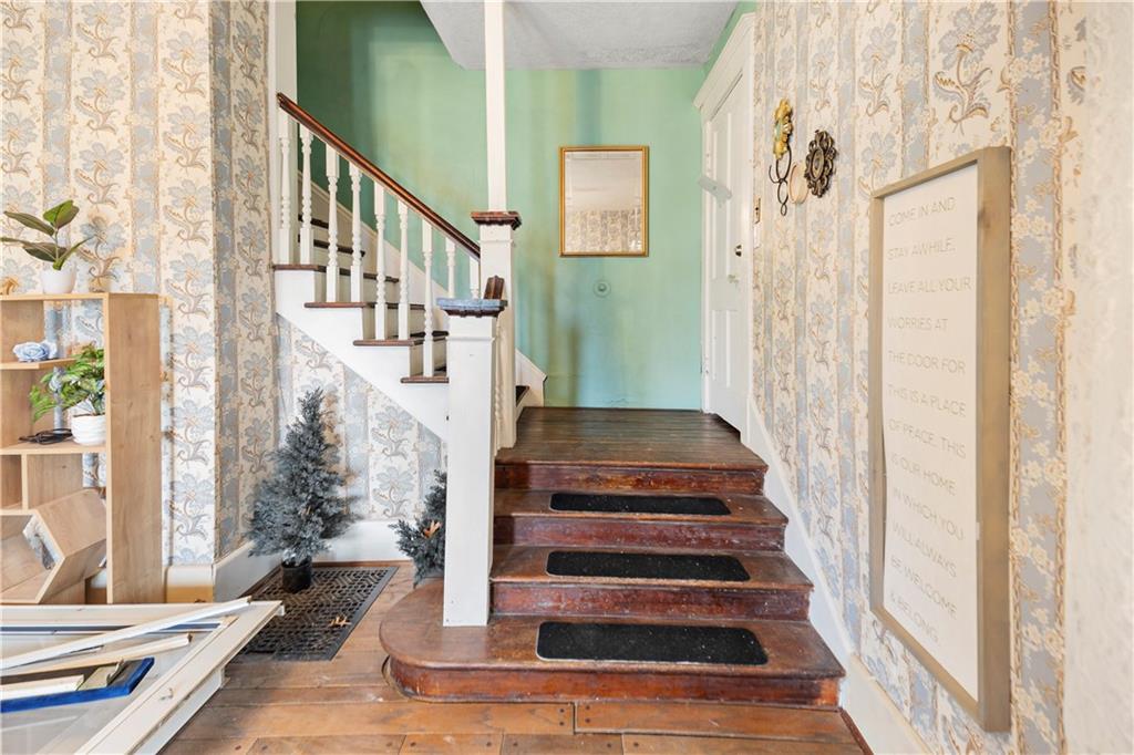 A timeless masterpiece! This victorian home has been meticulously restored, but still retains its opulent character. Featuring three levels of living space, 5 bedrooms and 4 bathrooms, this home is a mansion even by todays standards. Sitting on half a city block, the outside features brick lined pathways, a fenced in yard, brick covered patio and a detached garage. As you walk in the home you will be instantly greeted with an open living room, with vaulted ceilings and stained beam accents. In the kitchen, the walls are lined with brick, giving it a cozy and comfortable feeling. The dining room is perfect for entertaining, and has many windows bringing in natural light. The home has several chandeliers and multiple staircases so you are always reminded of that turn of the century character. Upstairs features the bedrooms, and a finished attic adding even more space to this home. There is also a full basement perfect for long term storage. Come take a look at this one of a kind home today!