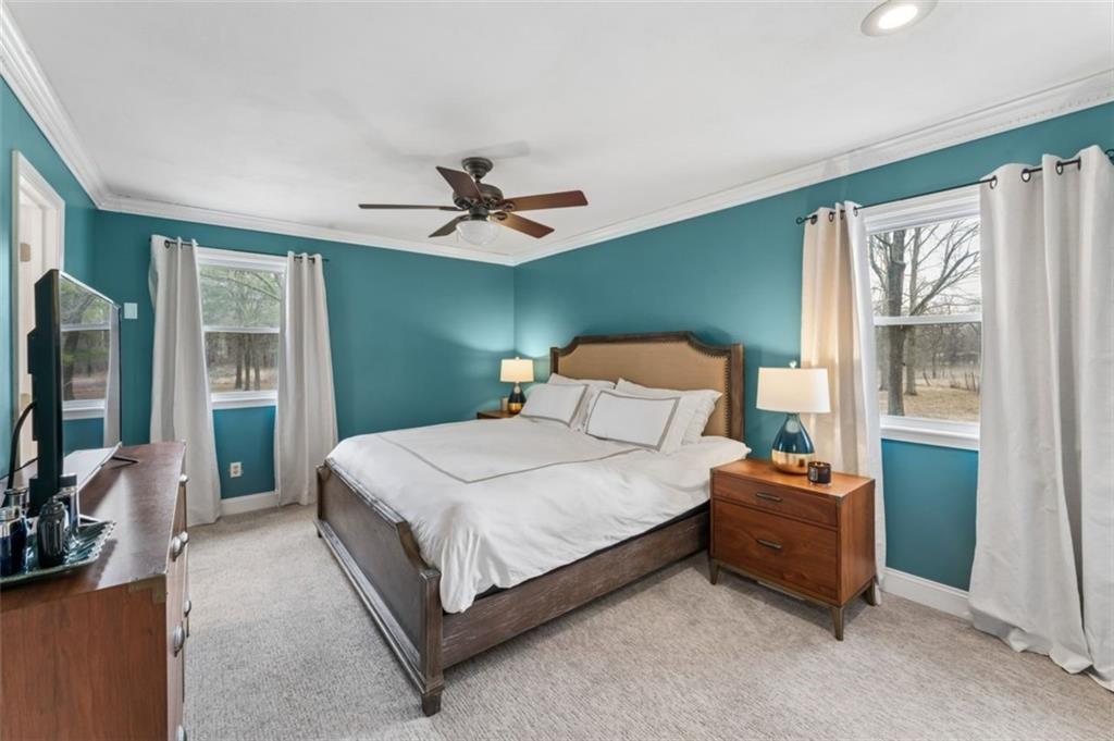 Welcome home to your new country estate! Pulling into this property, you'll hear the crunch of a freshly graveled driveway, and completely surrounded by an array of trees, giving full privacy, is a sprawling home that will await you in the quiet countryside. Inside you are greeted with an inviting entryway and sitting room with large windows facing north allowing natural light in this cozy room. Just a little further and you have a formal dining area with stylish fixtures and vibrant, stylish wall paper. The formal living room has vaulted ceilings, plenty of room for entertaining, and large, painted bookshelves on either side of a wood-burning fireplace. The room to not miss is the fully renovated kitchen, with custom cabinets, quartz counters, accents, hand-picked tile and all new appliances--you will just be excited to cook dinner every night! Towards the back, behind the kitchen is your mud area, garage with a Tesla EV charger, laundry room, and half bath for guests. The main level features 3 bedrooms and 2 bathrooms, including the primary suite, and upstairs are the remaining 2 bedrooms and a full bathroom. The basement will be a fabulous place to make your own. Almost 1,000 sq ft of finished space offers a ton of possibility for another living, office space, card table, pool table, you name it! The HUGE bonus is that you did NOT sacrifice storage space, because there is about 900 sq ft of that on the other side of the basement! Be at ease with the well-maintained mechanicals, including a new septic system as of 2021 and newer propane lines from the tank to the house. Out back you have a lovely patio space that faces into the woods. Nearby, a 30x40 outbuilding perfect for storage and workshop space. The immense privacy is something to dream about with this one of a kind home. Convenience, modern amenities, and country living all wrapped into one!