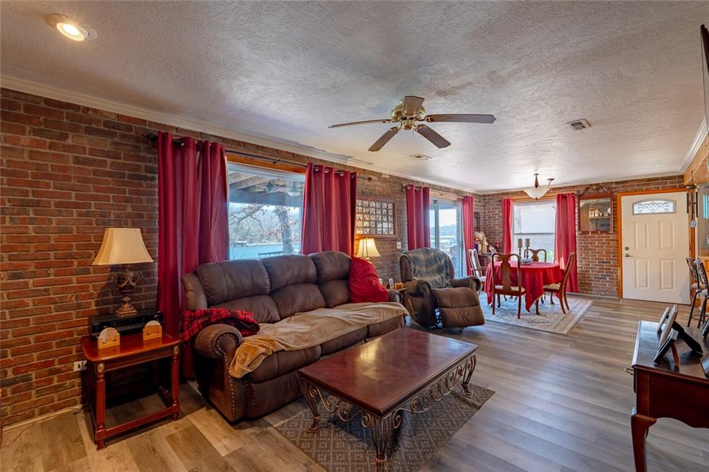 Nestled at the 8 MM in Buck Creek Cove, this lakefront retreat offers the best of both worlds—big protected cove and year-round water. If you’ve been waiting for that “this is the one” feeling, this might be it. This beautiful all brick home with detached 2 car garage has been thoughtfully updated with major improvements you’ll truly appreciate. The main level features brand-new LVP flooring and new windows that fill the space with natural light while boosting energy efficiency. Central heating and cooling have been added for year-round comfort, making lake living easy in every season. Both bathrooms have been completely remodeled with fresh, modern finishes. In the kitchen, you’ll find a new dishwasher & garbage disposal, ready for entertaining after long days on the water. The big-ticket items? Already handled. Updates include a new pressure tank on the well, new septic pump, aerator, and laterals, plus a new shallow well pump on the dock—giving you peace of mind so you can focus on enjoying the lake. Relax outside on the screened in patio or step down to the dock for all your summer fun. Just a short boat ride away from Shady Gators, Tap & Grill & Franky & Louies