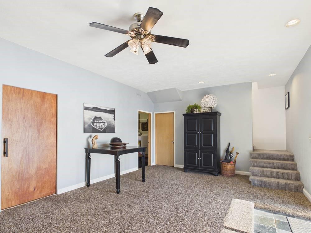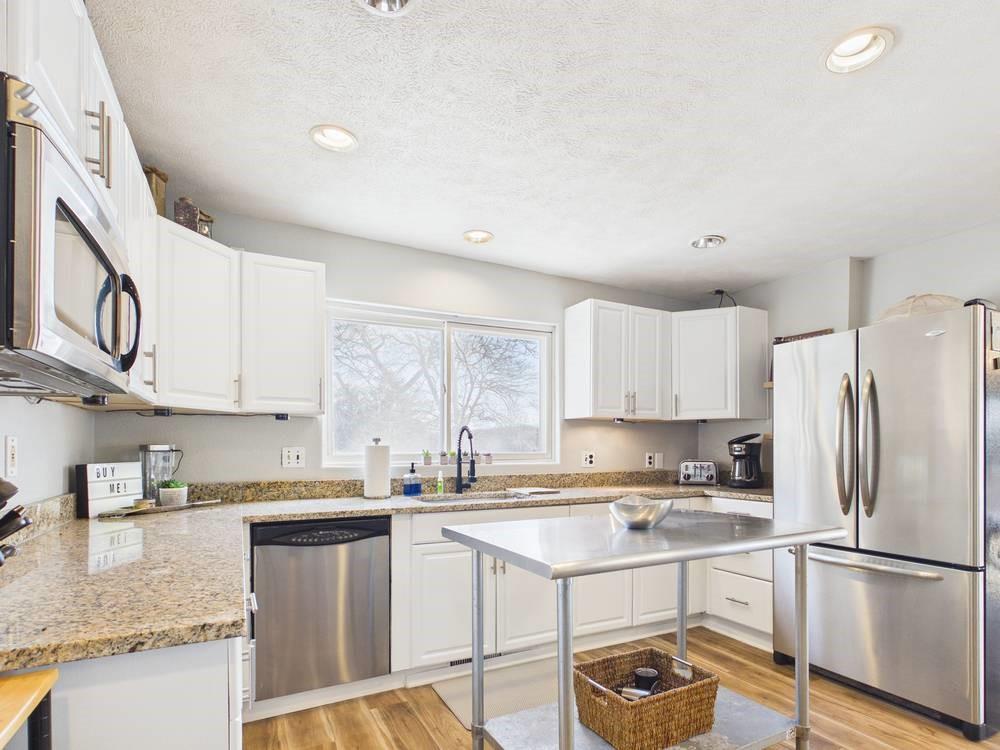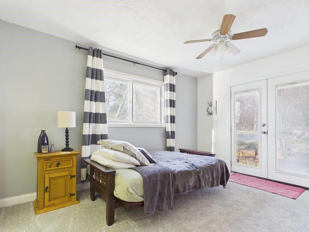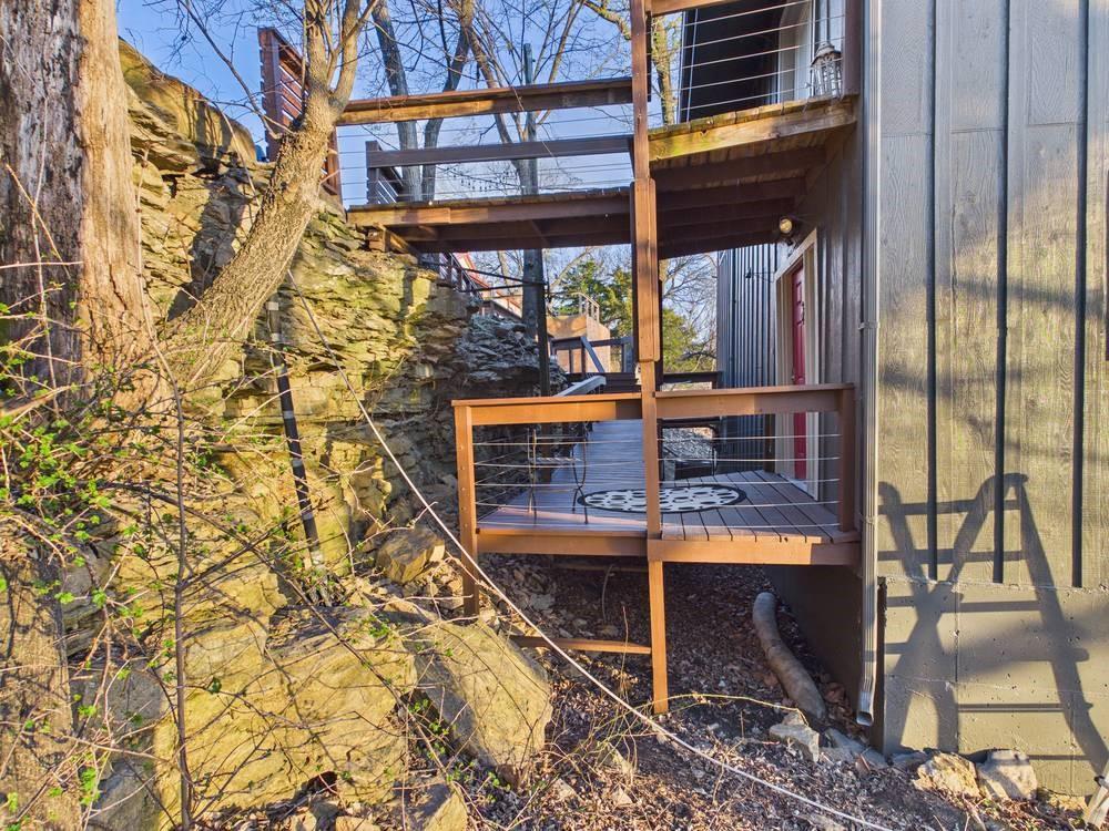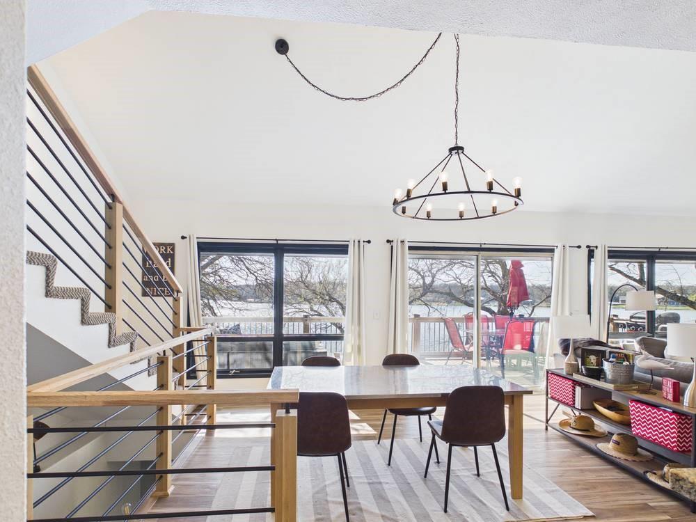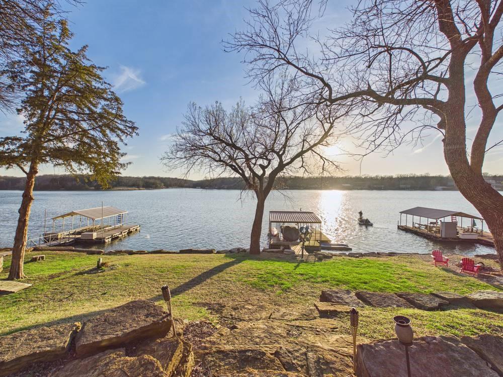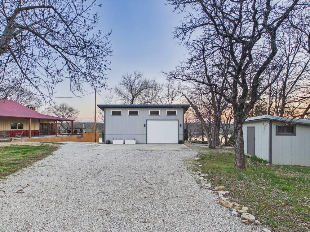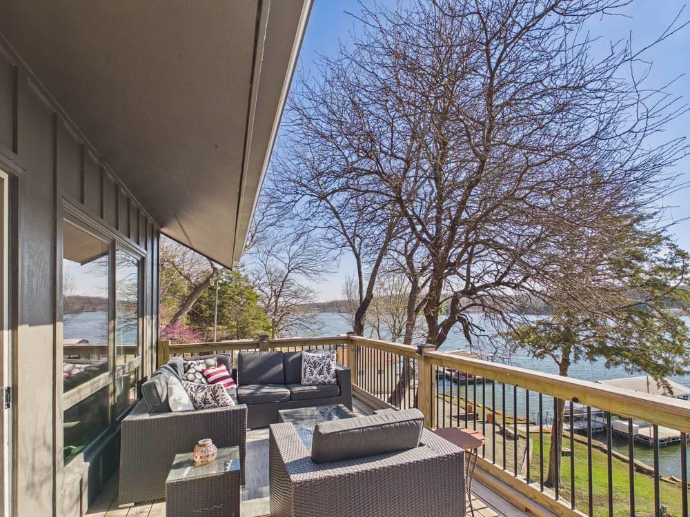 Situated on the tranquil shores of Lake Fort Scott, this fully furnished property features a charming main house and a separate recreation building, ideal for hosting guests and enjoying leisure time. The main house boasts three bedrooms and two-and-a-half bathrooms. Spanning three levels, the residence features a bright and airy open floor plan on the main level, highlighted by vaulted ceilings and modern stainless steel appliances in the kitchen. The expansive deck provides ample space for outdoor gatherings, while the lower-level covered patio serves as an additional entertainment area, ideal for relaxing by the lake. The separate recreation building enhances the property with an entertainment area, complete with a full bath, wet bar, sleeping area, and dining space, making it an excellent retreat for relaxation or entertaining. Additional perks include two storage sheds for convenience and a private boat dock complete with a lift, making it a perfect retreat just an hour and 15 minutes from the Kansas City area. Enjoy lakeside living at its finest! The exterior of the main house has just been completely repainted with wood repair and interior touch-ups. Lake Fort Scott has a $150 a year lake frontage fee and a monthly sewage bill paid to the city.