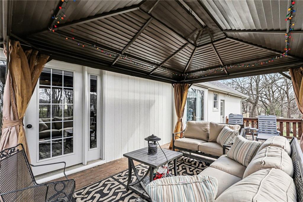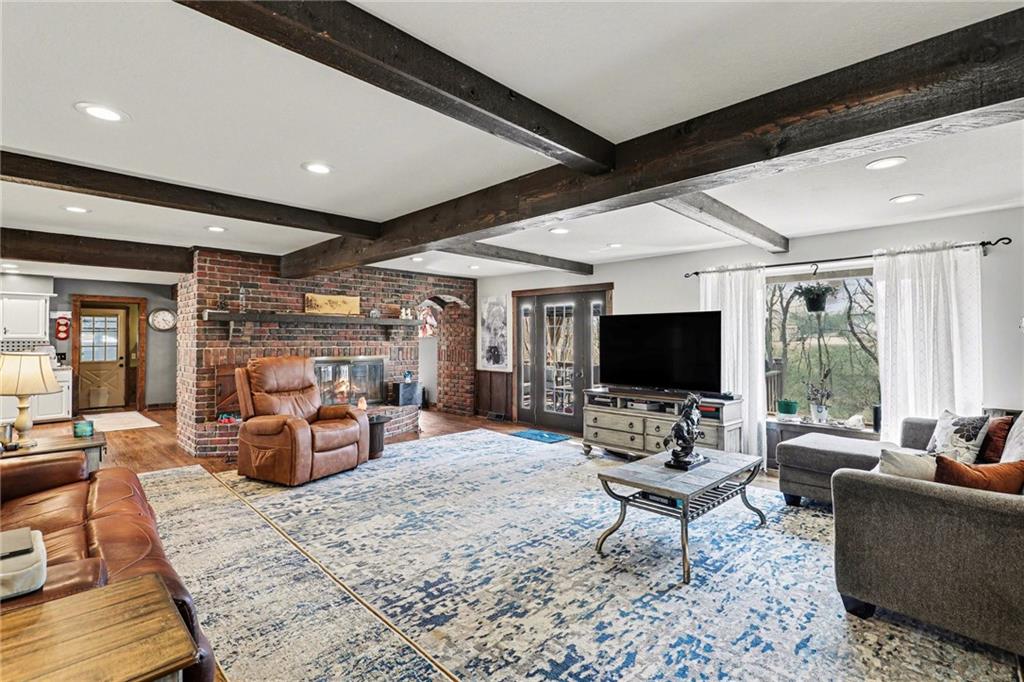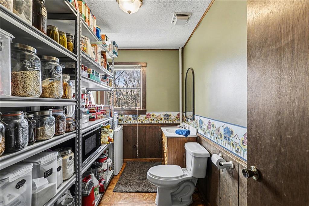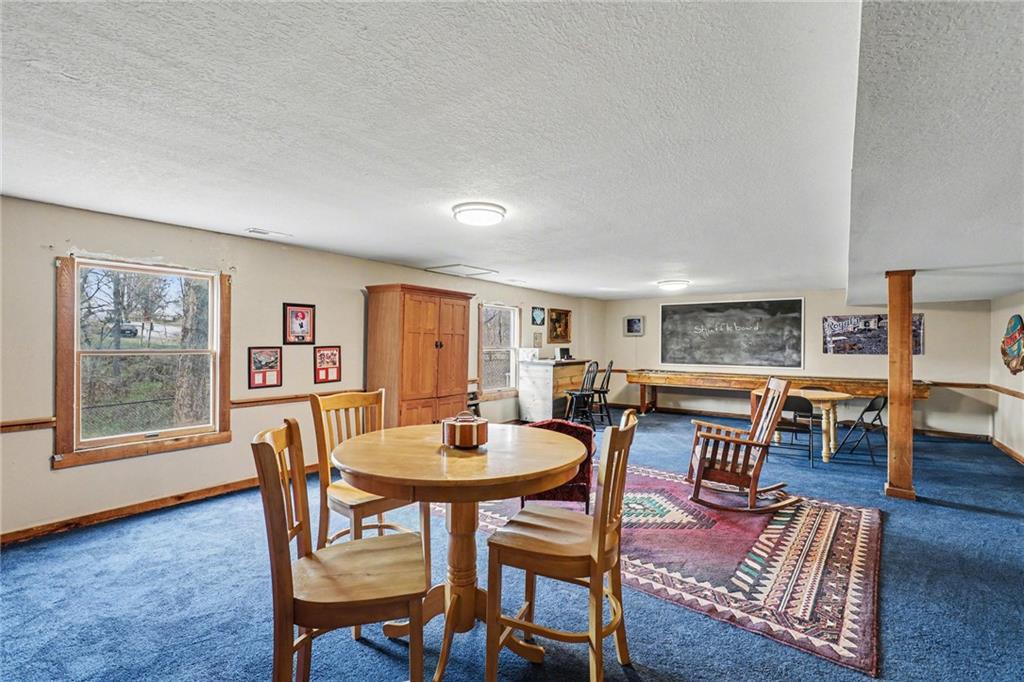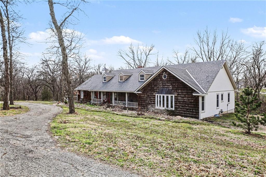 This charming, storybook home near the golf course is nestled on just over an acre with beautiful wooded views, offering character, space, and inviting farmhouse touches throughout. As you walk through the front door, you are greeted with original wood floors, open living spaces, and a gorgeous see through brick fireplace with a wood burning insert as the focal point of the living room. The dining room flows seamlessly from the living area and shares the two sided fireplace, while the spacious kitchen features granite countertops, a large pantry, and cottage inspired farmhouse charm. The primary bedroom is a true retreat with a bow window, hardwood floors, and an oversized walk in closet. The ensuite includes double sinks and a custom barn door. A second main level bedroom with its own bathroom, along with additional half baths, a laundry room, and a three car garage, complete the main floor. Upstairs offers two bedrooms and a full bathroom. The finished basement adds extra living space with a large recreation area, custom shuffleboard, a bedroom, full bathroom, generous storage, and a fourth garage, plus potential for a non conforming fifth bedroom or second kitchen. Outside, enjoy a spacious fenced backyard with a deck, covered gazebo, and patio, all backing to woods with golf course views. A charming fire pit with swings adds the perfect touch for relaxing or entertaining.