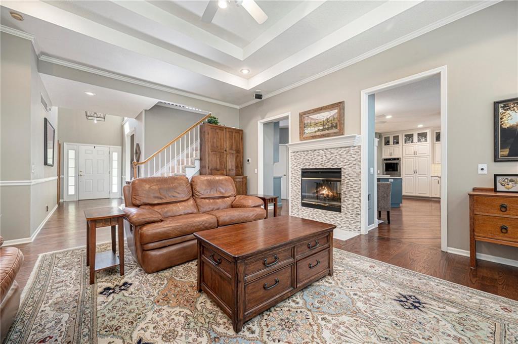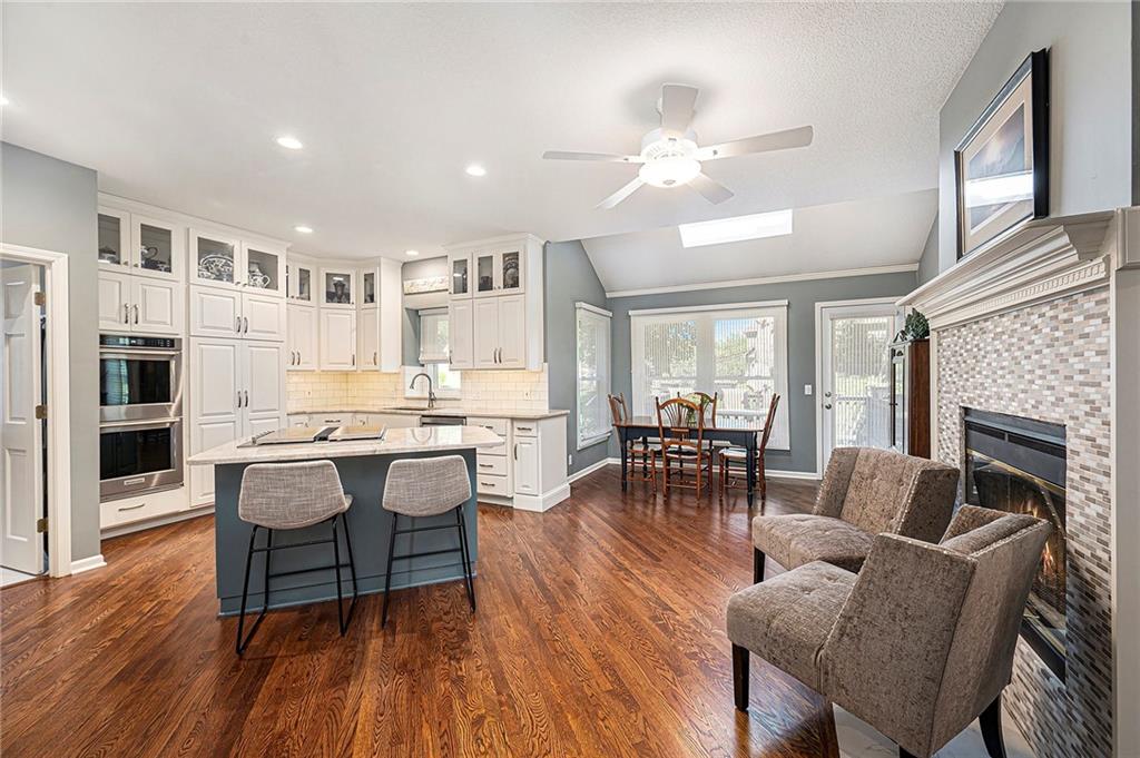 SEPARATE LIVING SPACE WITH 4TH CAR GARAGE AND SEPERATE ENTRANCE! ABSOLUTELY MOVE-IN READY! Located in the niche neighborhood of Hills of Monticello this 1.5 story home has features like no other and exquisite updates throughout! Elegant dark walnut hardwoods on the main level and a spacious owner's suite. A beautiful living room that was built for entertaining plus a second bedroom/office on the main level. A completely remodeled kitchen featuring marble counters, glass cabinet fronts, convenient kitchen island, under cabinet lighting, stainless double oven, skylight and double oven. It is TRULY A CHEF'S DREAM KITCHEN! The formal dining area is the perfect family gathering spot for holidays and special occasions. Don't miss the luxurious ensuite owner's bath with glass walk-in shower, whirlpool tub and porcelain tile floors. The upper level boasts two large bedrooms with walk-in closets PLUS a super cool "loft" area... perfect for lounging or a gaming area. Downstairs you'll find a complete separate living area with it's own garage! NEW CARPET AND PAINT in the Lower Level and ADA accessible - perfect for a live-in relative. Large three-car side entry garage on the main level. Pride of ownership shows everywhere! Newer HVAC System, elegant custom Hunter Douglas window treatments throughout the home and extensive landscaping with full sprinkler system. You will love the convenience of this location as well! Just minutes from Parkville, easy access to I-29, grocery stores, pharmacies and local restaurants. 15 minutes South of the new KCI airport and 15 minutes to downtown KC. And did I mention no Kansas City E-Tax? Make your plans to visit this home when it goes ACTIVE ON MARCH 13th!