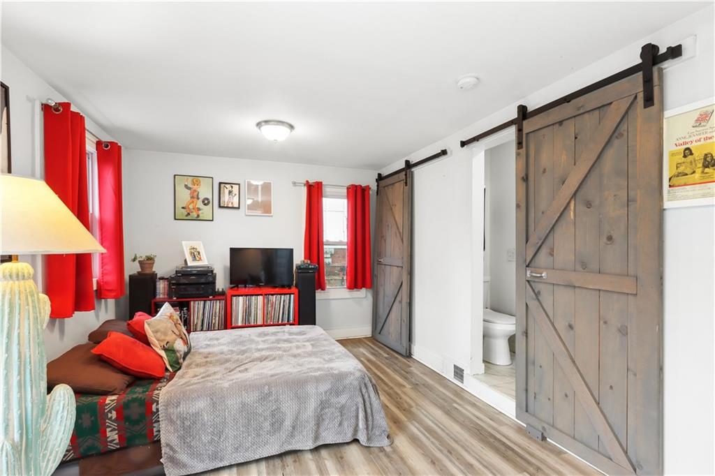 This bright, open floor plan was fully remodeled 6 years ago- roof, HVAC, water heater and sewer line 7 years old or less! On the first floor you'll find the living room, half bath, spacious dining room with an atrium reading nook, a stylish kitchen with tons of storage and open shelving, plus a hard to find main floor bedroom with full bathroom that opens to the large, partially fenced back yard! This room also makes a great family room with laundry hookups in the closet if you prefer. The 2nd floor offers 2 large bedrooms, huge walk in closet and large bathroom with more laundry hookups! Inviting front porch and back patio are great for relaxing with your favorite beverage or entertaining. Private drive big enough for 4 cars!