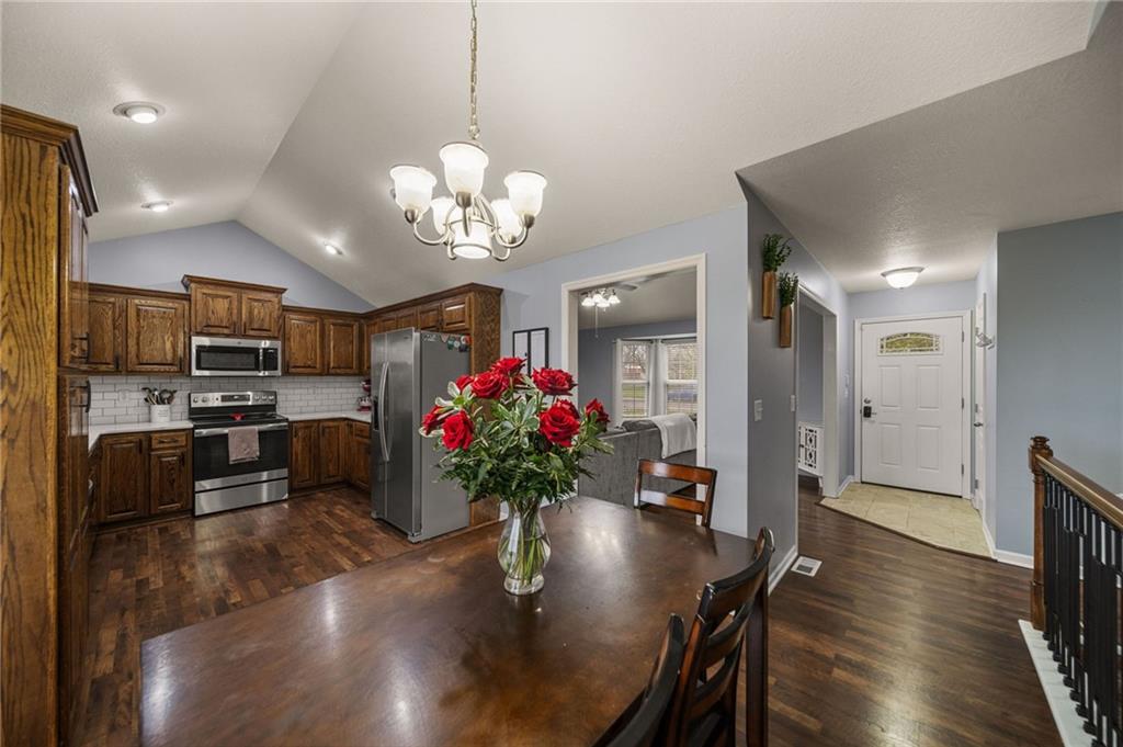 Beautiful Ranch in a Great Odessa Location! Step inside this charming ranch featuring a bright living room with vaulted ceilings and an open, inviting feel. The updated colors and décor give the home a fresh look, while the kitchen offers plenty of cabinet space and generous counter areas. The spacious primary bedroom also features vaulted ceilings, creating a relaxing retreat. Enjoy the convenience of main floor laundry and generously sized main-level rooms. The finished lower level includes an additional bedroom and full bath, offering 4 bedrooms and 3 bathrooms. Outside, the backyard features a rear-entry double garage with a large concrete pad. Convenient location for an easy commute — come take a look!