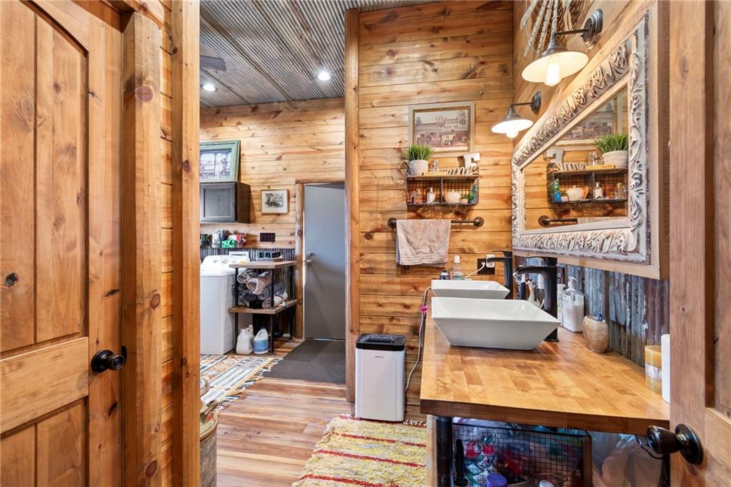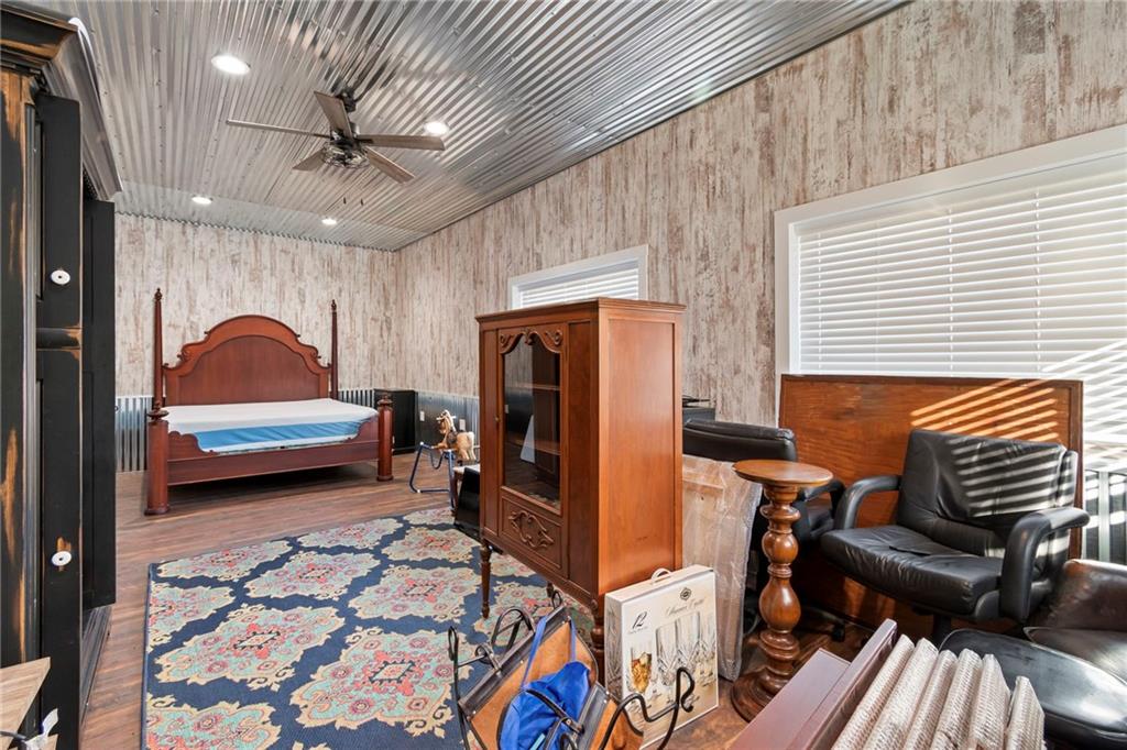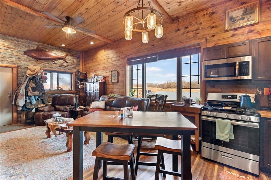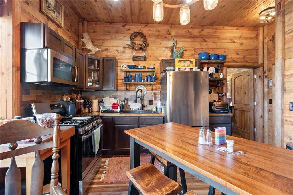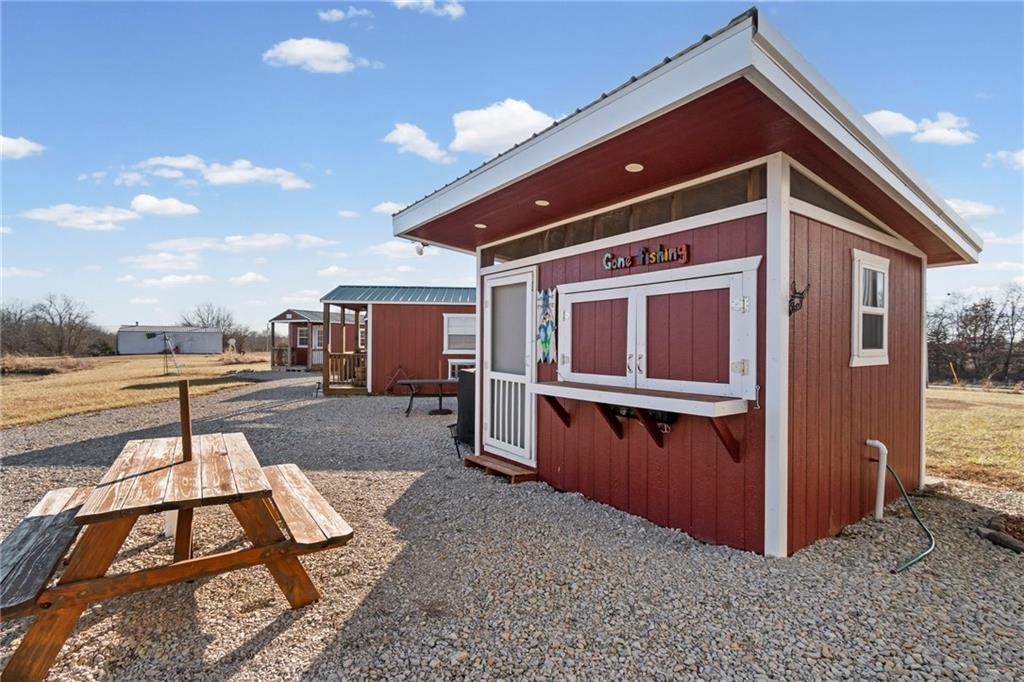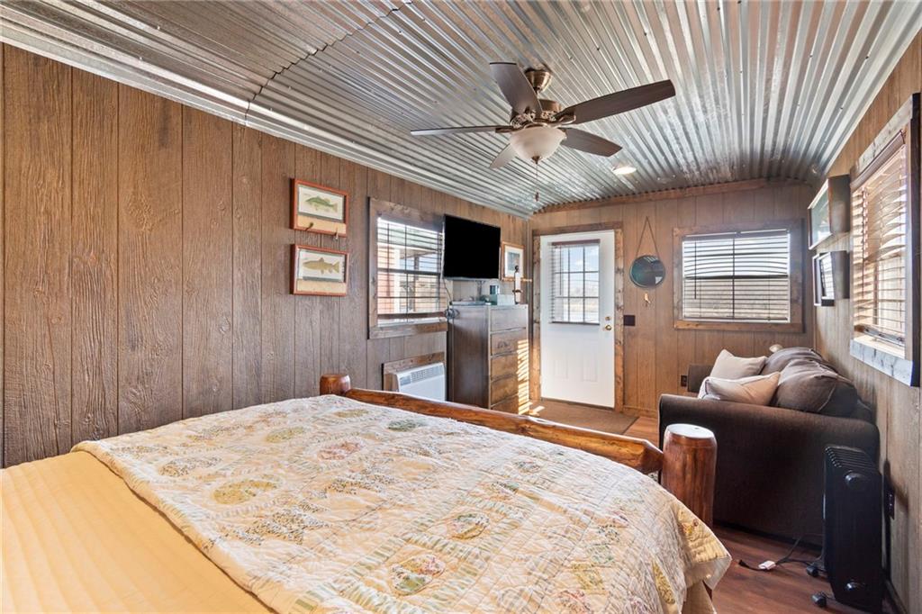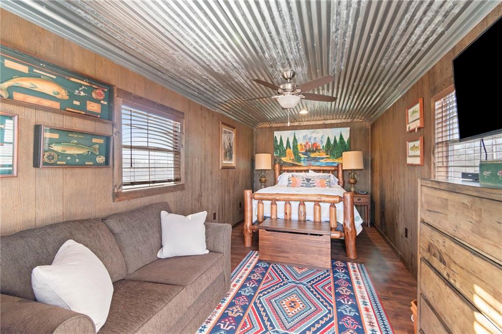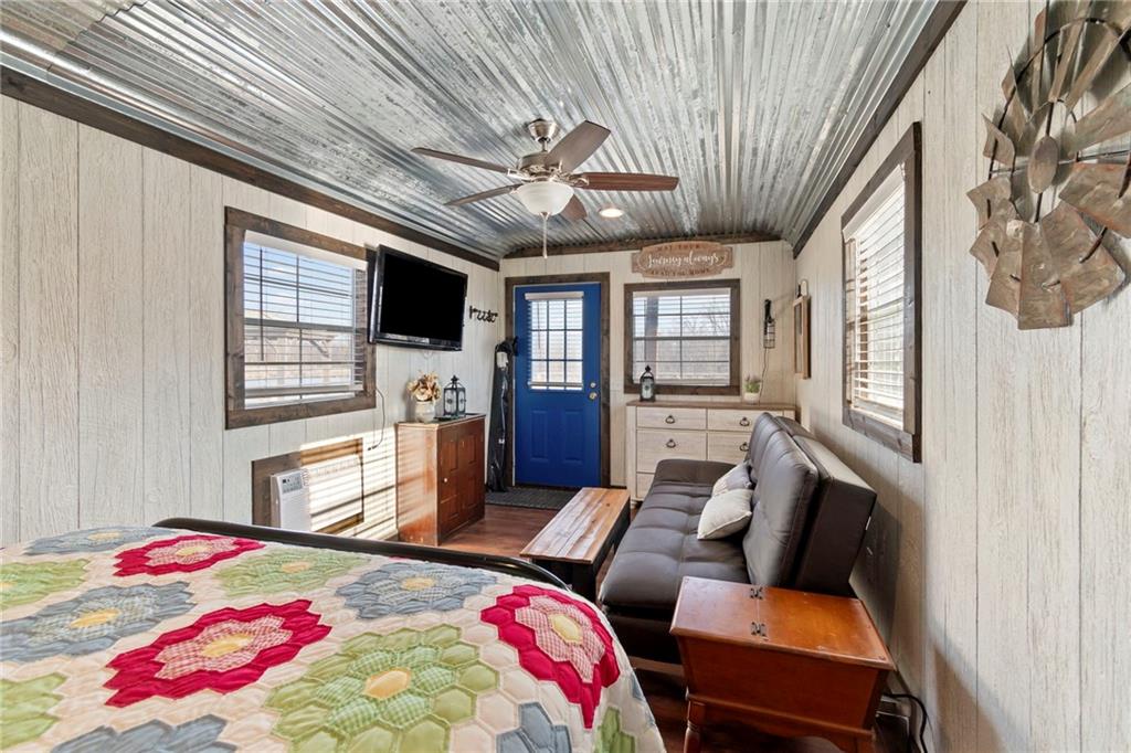 Tucked away in a serene, private setting, this truly once-in-a-lifetime property offers a rare blend of comfort, functionality, and natural beauty. The 1 bedroom, 1 bathroom main residence is thoughtfully designed and features an attached two-bay garage, including a 14-foot RV bay with a 6-inch concrete floor, perfectly suited to house a 36-foot RV, boat, or large recreational equipment. In addition to the main garage, the property boasts a second two-bay garage, 4-inch concrete floor with an attached finished, livable room, ideal for guests, a home office, hobby space, or extended living. Three additional livable cabins provide endless flexibility—perfect for short-term rentals, family retreats, or private guest accommodations. Property also includes a 22 kW propane Generac Guardian backup generator. Outdoor living is nothing short of exceptional. A stunning 4.7-acre spring-fed pond, stocked with fish and clear throughout the summer, serves as the heart of the property. Enjoy peaceful mornings and unforgettable evenings at the dock, fire pit, gazebo, and pondside seating, complete with a cooking grill for entertaining in a picturesque setting. Nature lovers will appreciate the productive orchard, featuring plum, cherry, apple, and peach trees, offering fresh fruit right from your own land. With abundant storage and garage space throughout, there is room for all your toys, tools, and dreams. Whether you’re seeking a private retreat, multi-generational living, or a unique investment opportunity, this extraordinary property offers unmatched versatility, tranquility, and charm—an opportunity that truly comes along once in a lifetime.